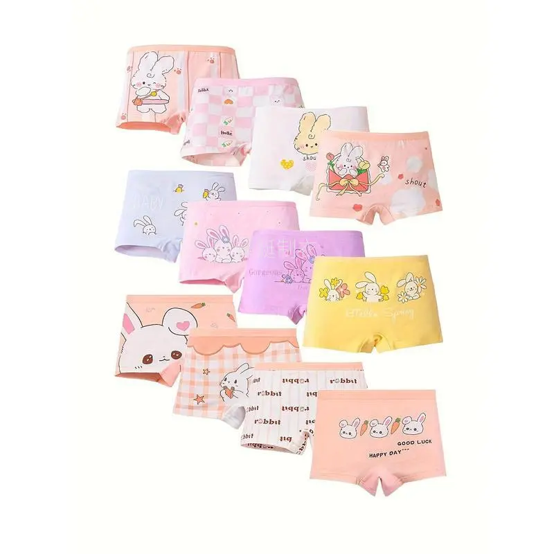5. New12-Pack Cotton Girls' Boxer Briefs - Cartoon Pattern, Comfortable Soft Knit Underwear, Mid Rise with Stretch (95% Cotton, 5% Spandex) Children, All-Season Medium Support Pants Pastel Color Panties Cute