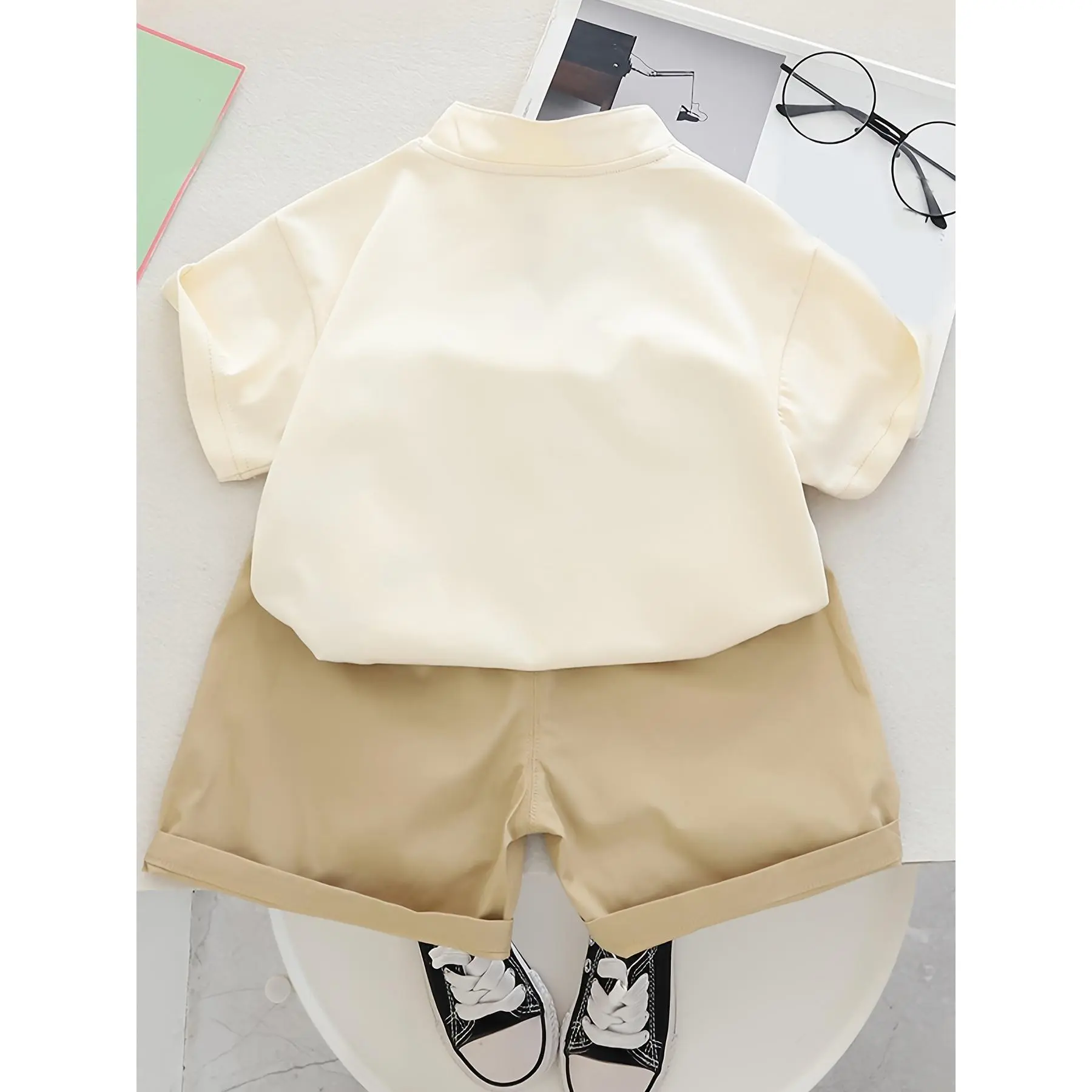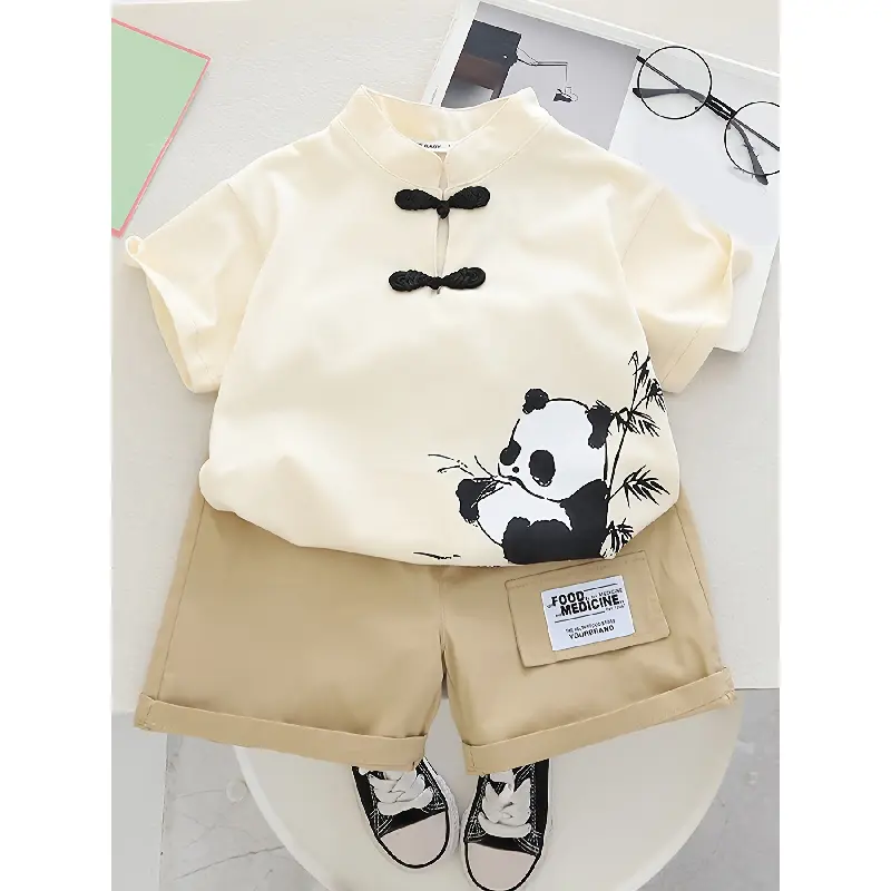 (New)New Summer Children's Chinese Style Short-Sleeve Set with Little Panda, Perfect for Outdoor