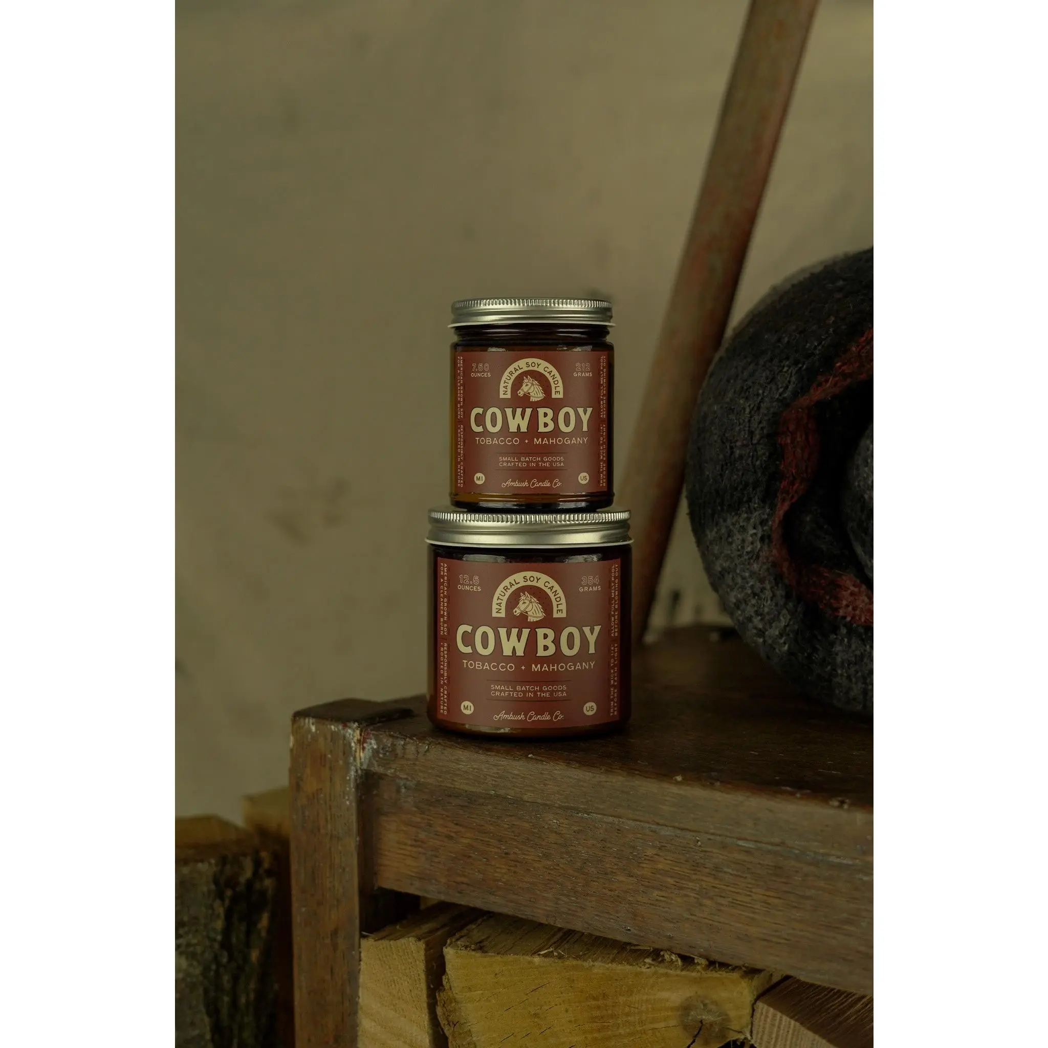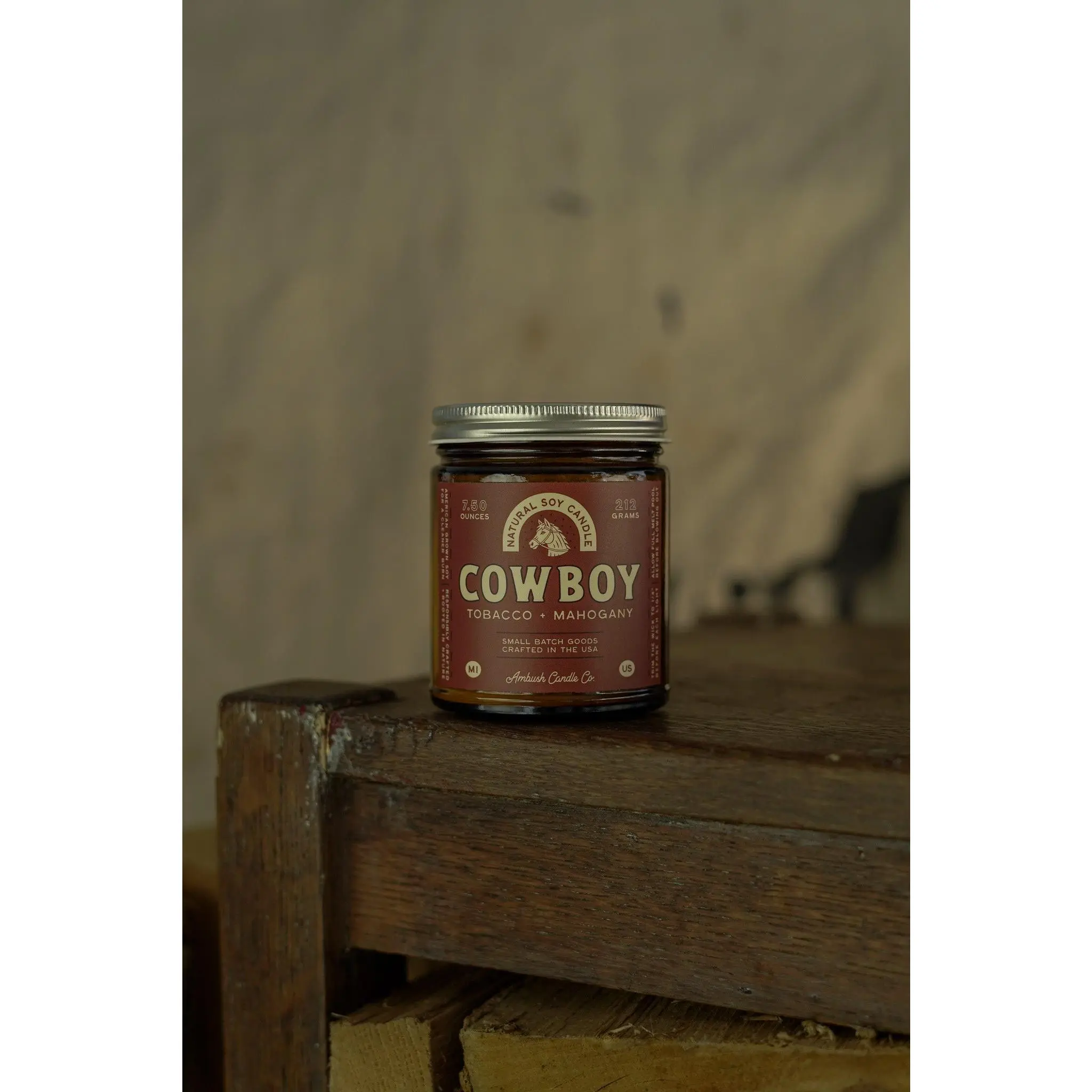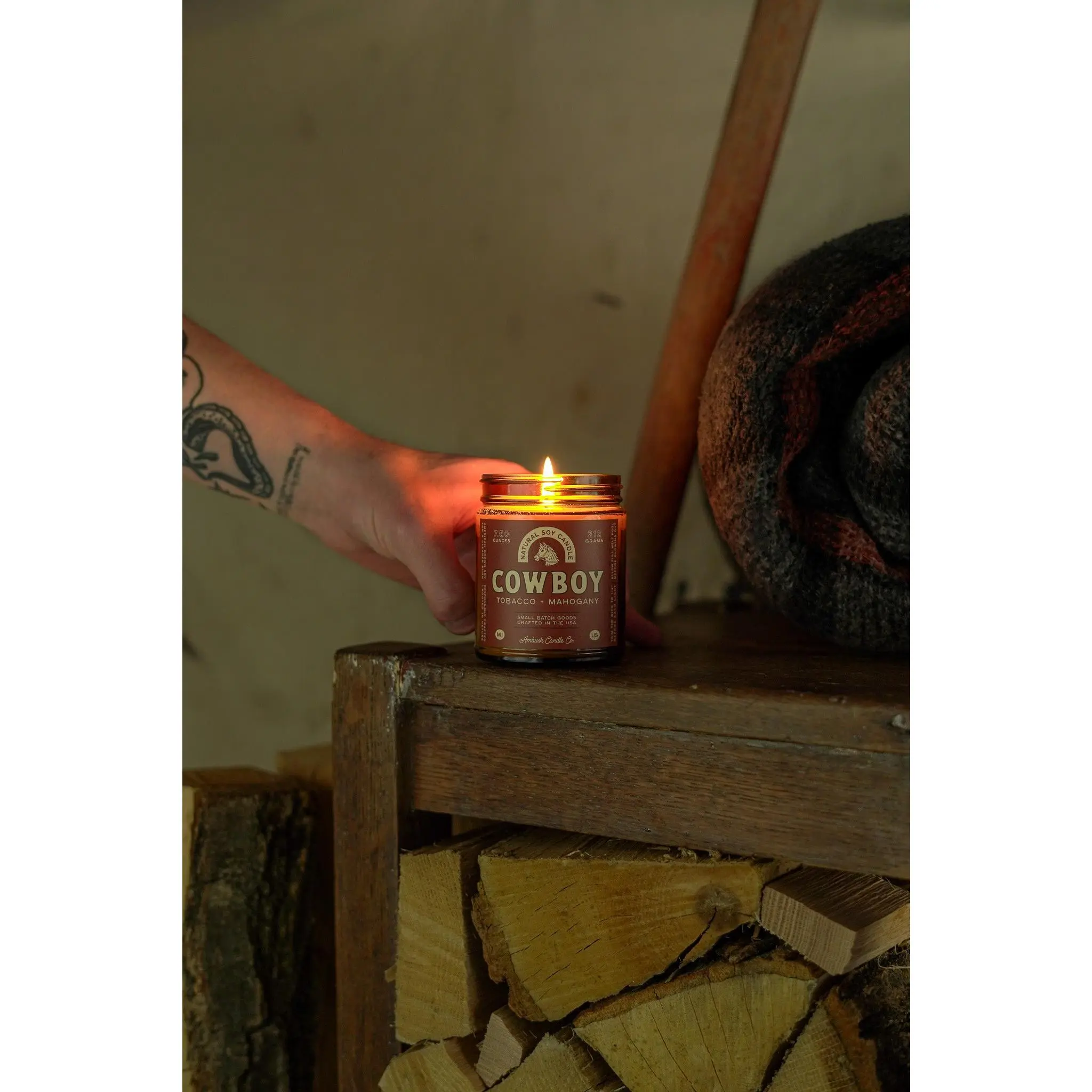 Cowboy is the perfect burn for the end of a long day. Rich mahogany and teakwood meet a balanced blend of bergamot and tobacco.