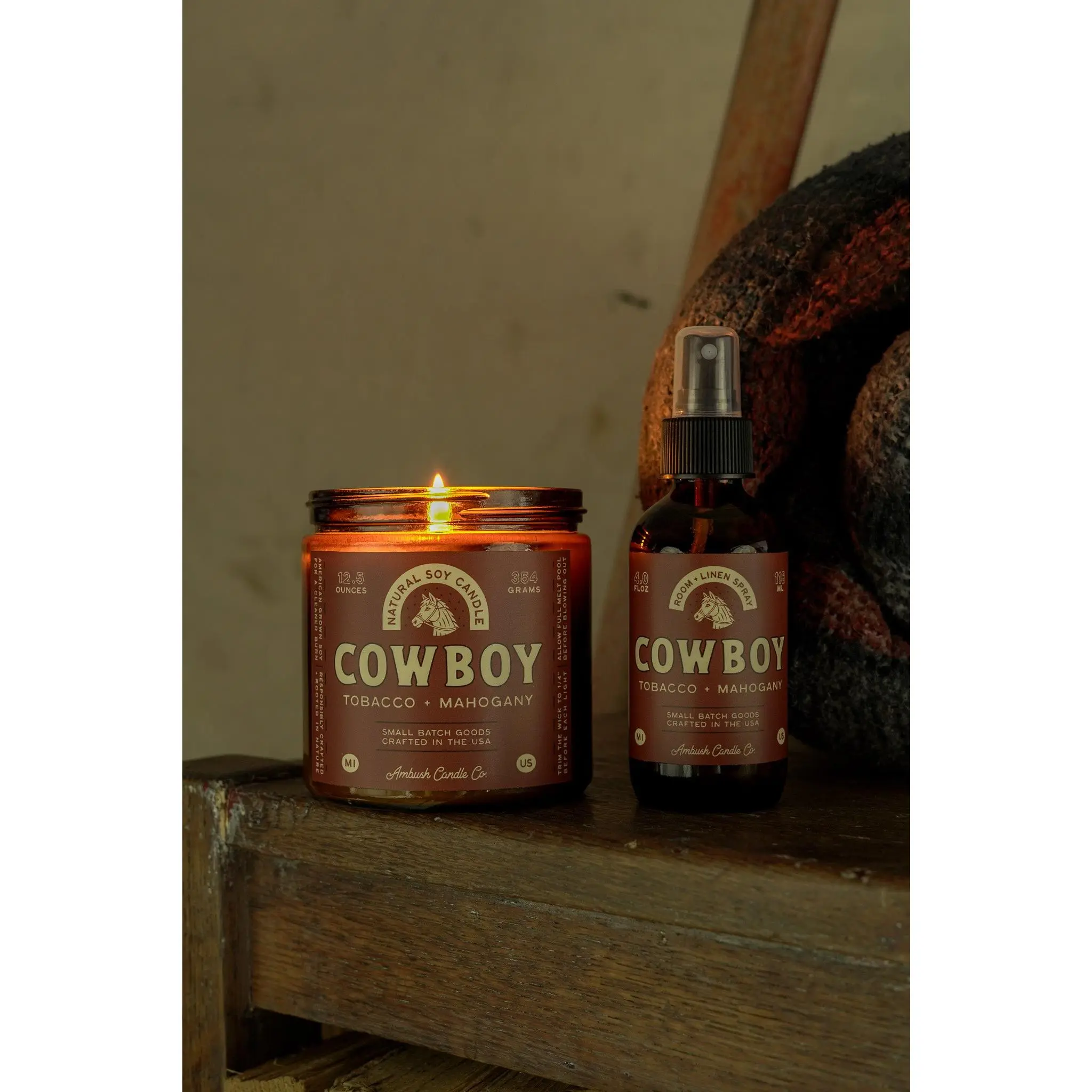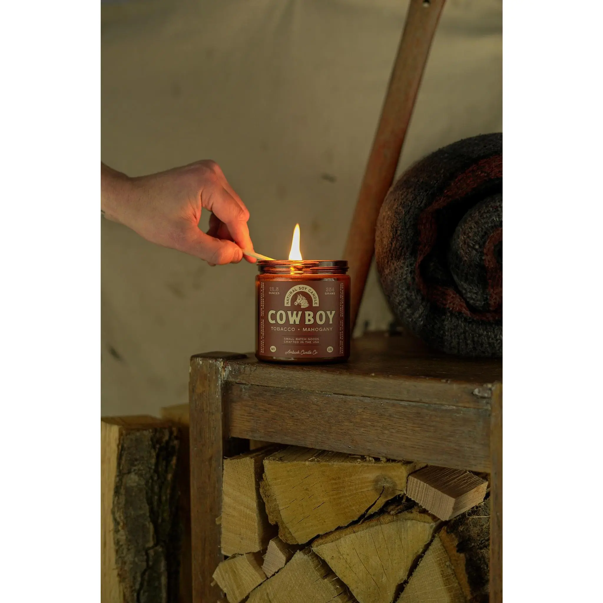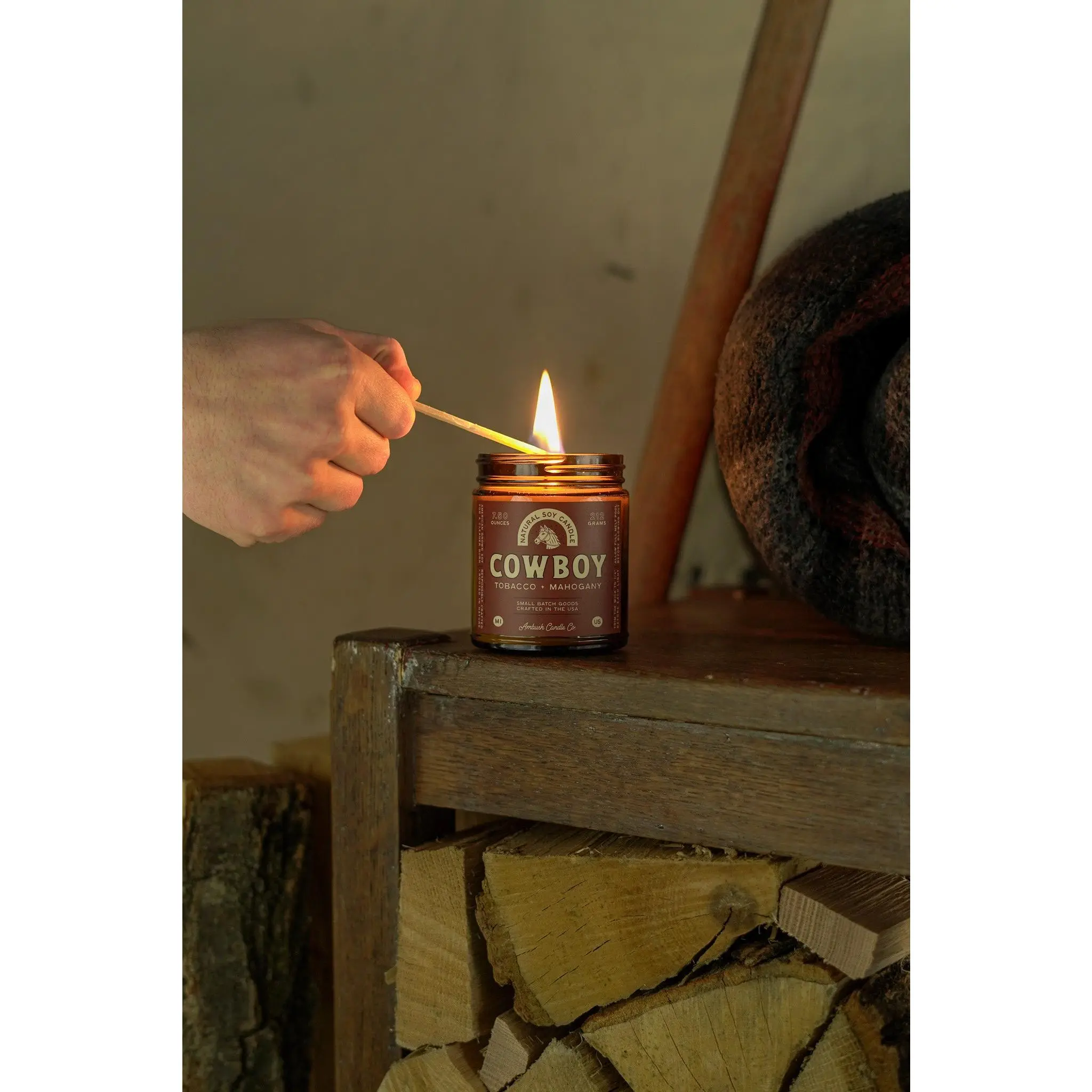 Cowboy is the perfect burn for the end of a long day. Rich mahogany and teakwood meet a balanced blend of bergamot and tobacco.