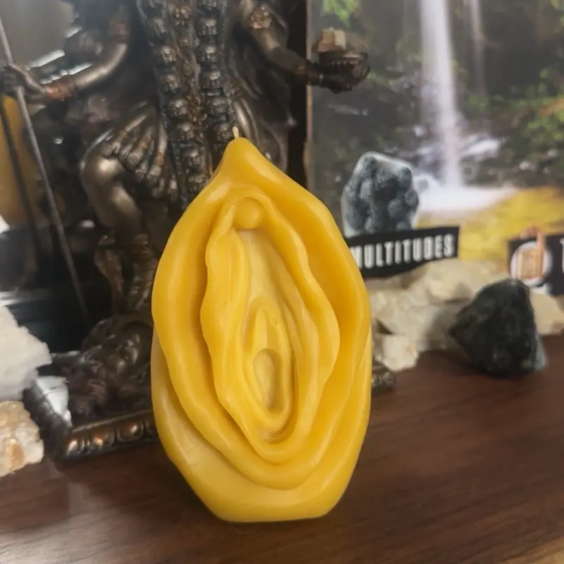 Handcrafted vulva-shaped candle, made from 100% pure beeswax. Each piece is hand-poured with intention and SO much love to create a unique piece of art that honors femininity, womb-connection, and ritualistic self care.