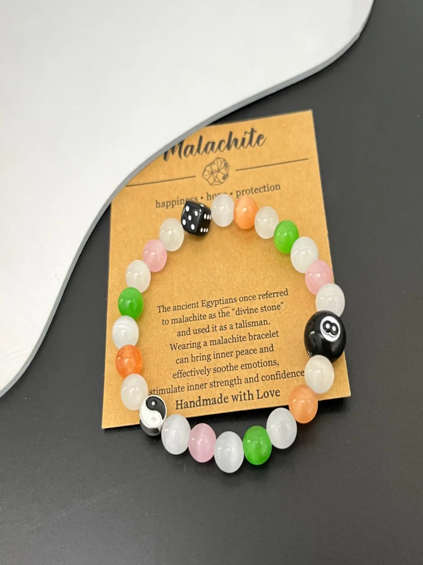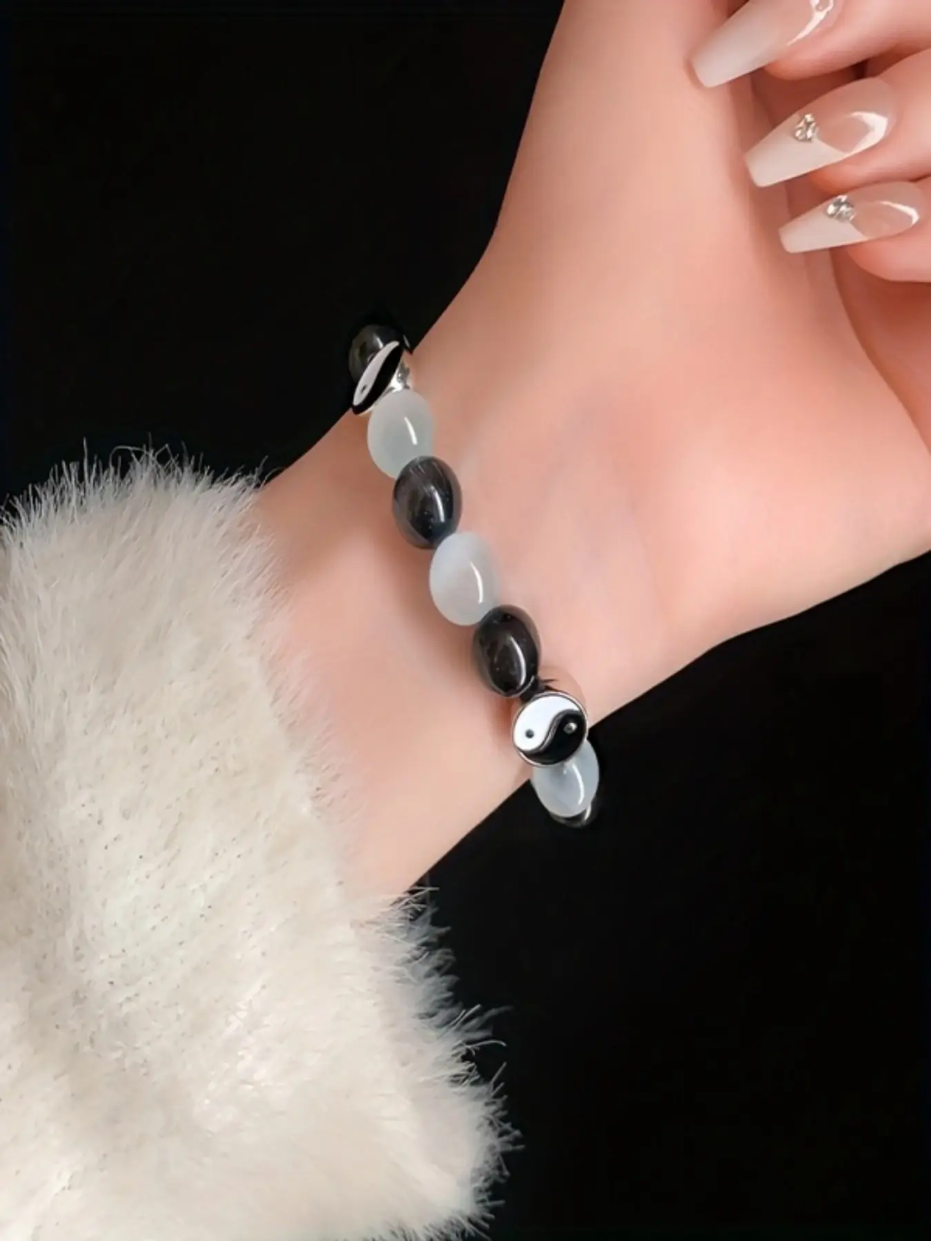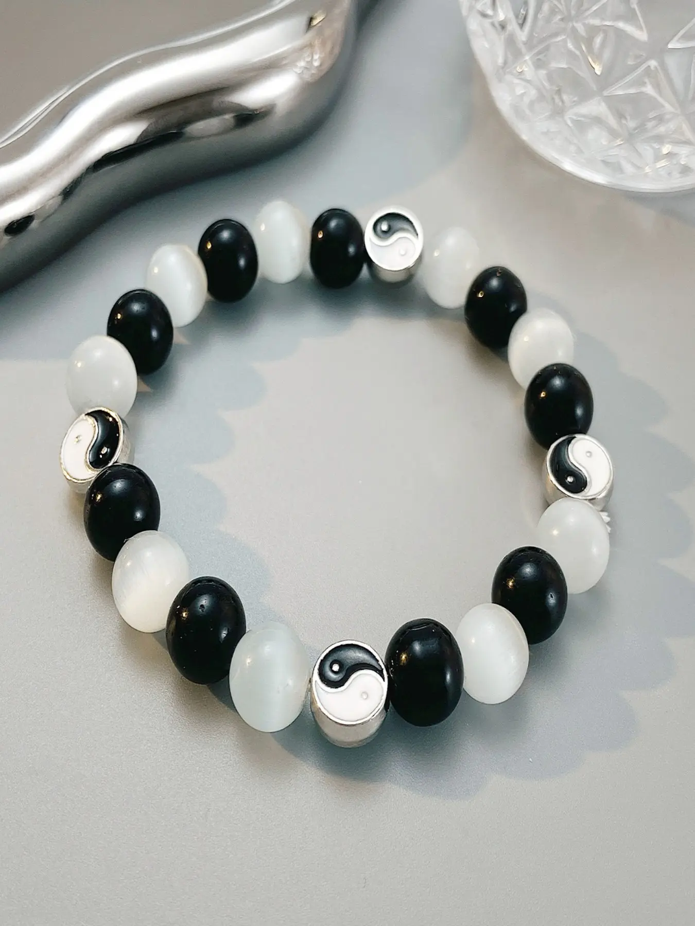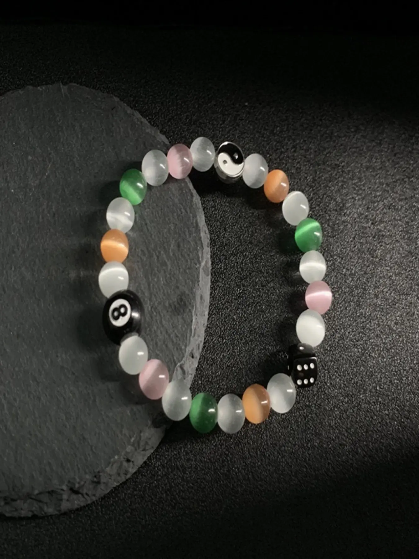1/2pcs, Couple's glass bracelet with high-end temperament, Chinese style yin-yang eight trigrams billiards, black eight dice design, giving gifts to lovers, girlfriends, classmates for daily wear, birthday gifts