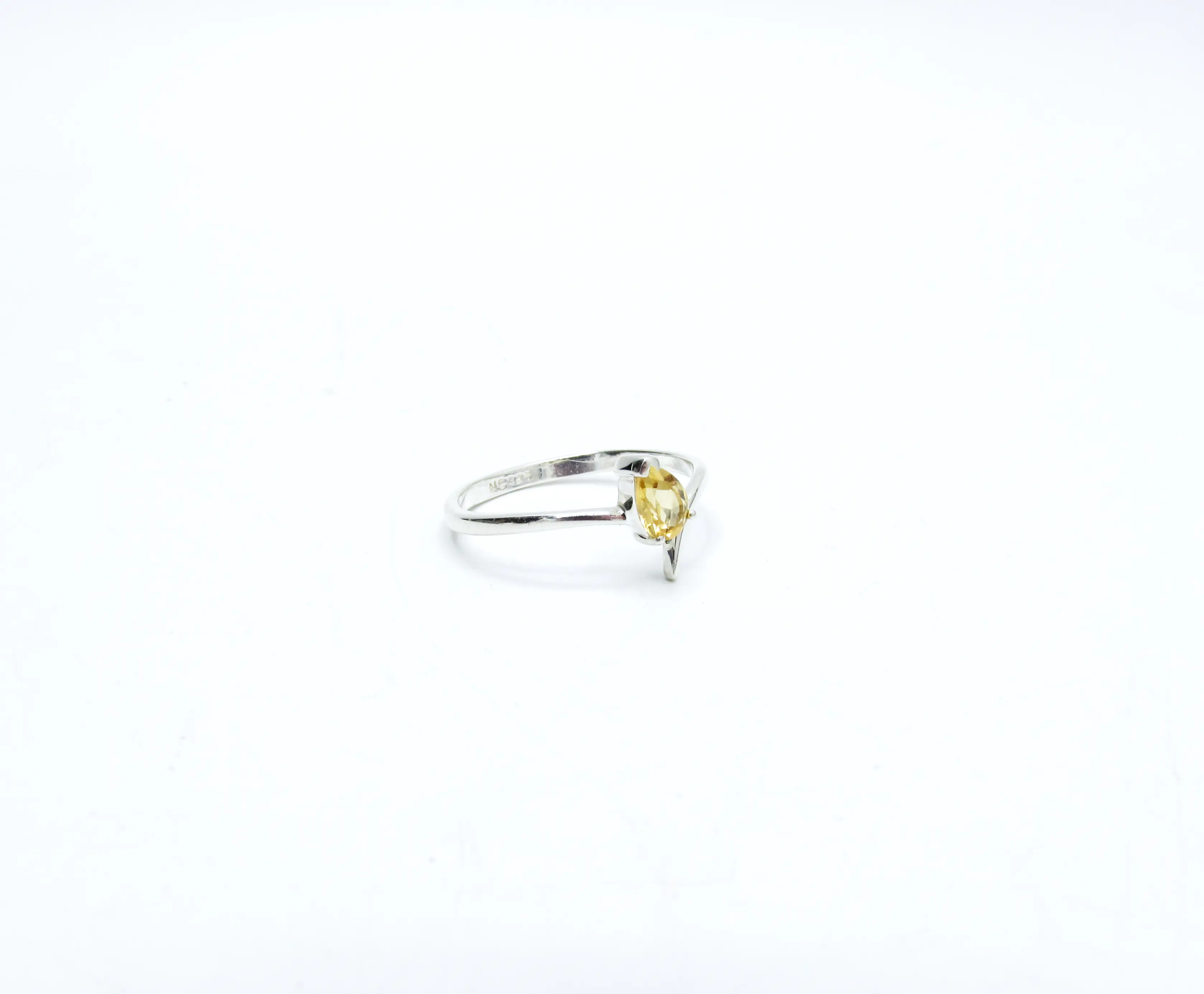 Bright and radiant, this sterling silver ring features a hand-selected Citrine gemstone n a classic pear shape, offering a warm golden glow.