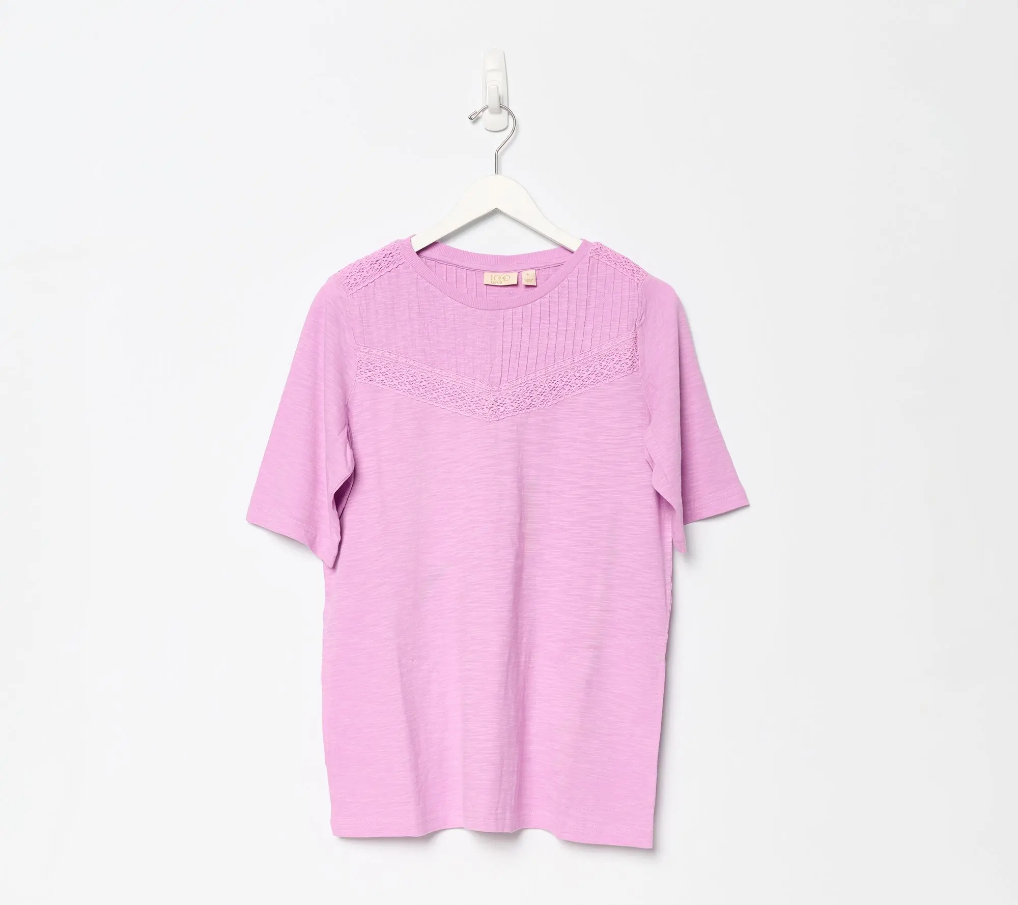 From workday meetings to weekend outings, this tee brings a touch of romance to any moment with delicate lace and a soft cotton feel. Elbow-length sleeves and a flattering semi-fitted silhouette make it easy to style under a jacket or solo with your favorite jeans. From LOGO Lavish by Lori Goldstein.