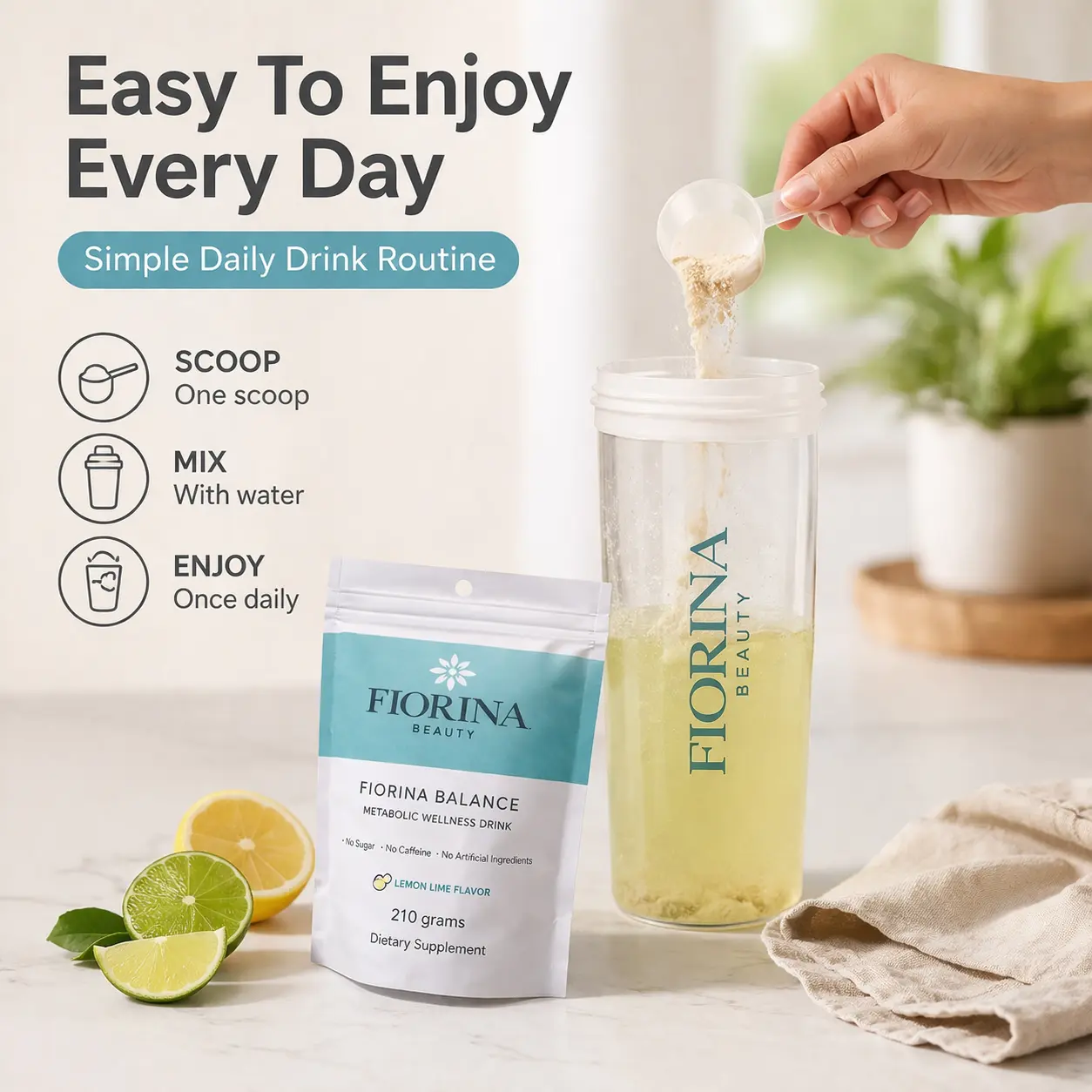 A clean, refreshing daily wellness drink designed to fit easily into your everyday routine.