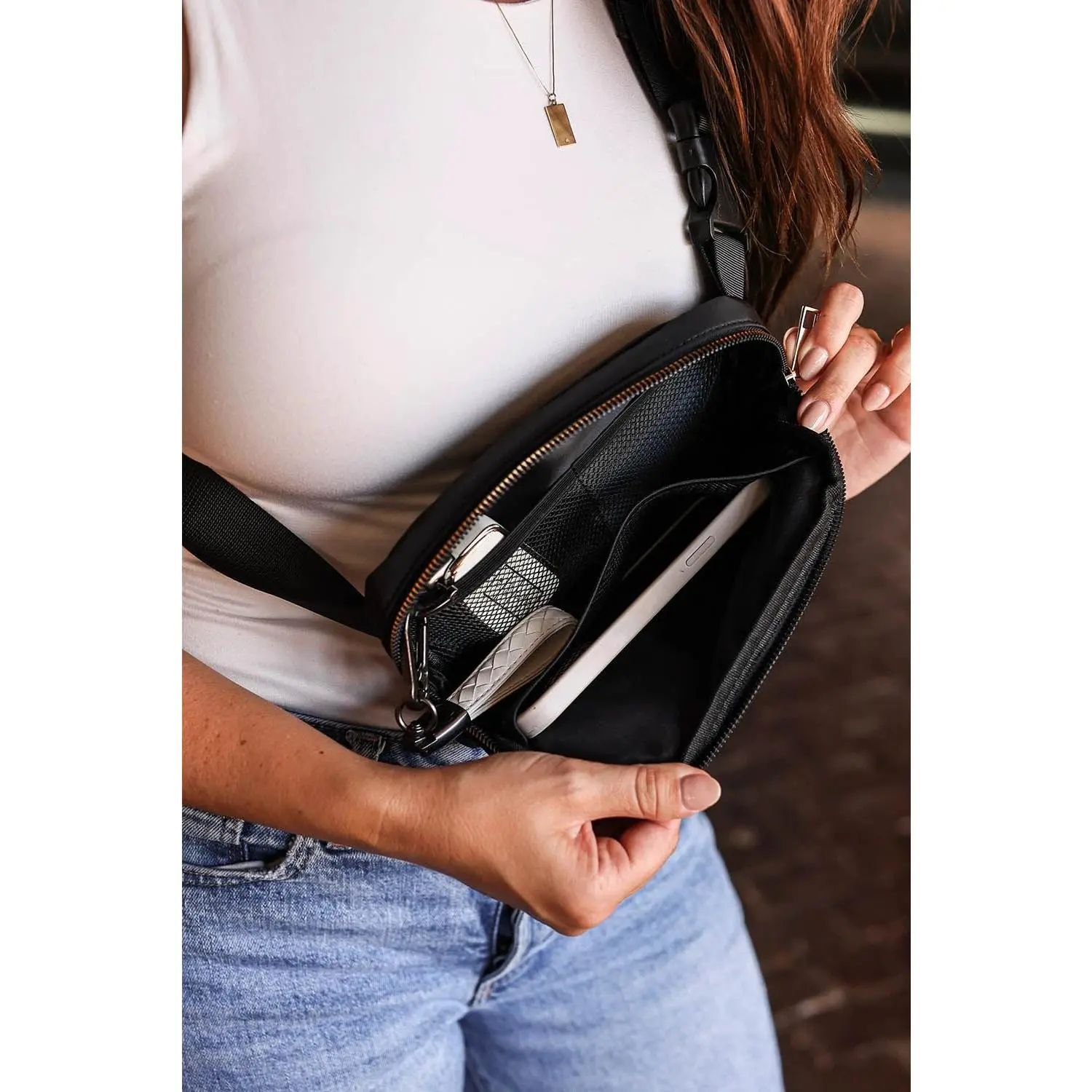 Black Waterproof Zipped Crossbody Chest Bag 20*5*14cm