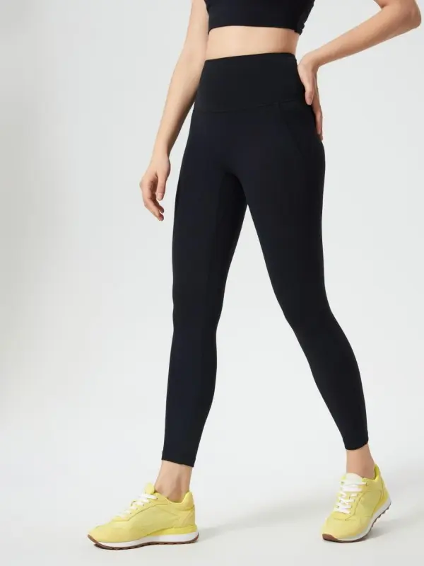 Made from a high-quality blend of 79% nylon and 21% spandex, these leggings offer a highly stretchy and breathable fabric that ensures flexibility during workouts. The wide waistband offers a flattering silhouette and excellent support.