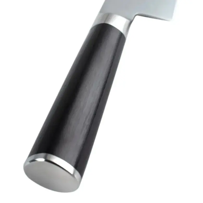 Shun Classics Chef's Knife, 8" blade, VG-10 cutting core clad with 32 layers SUS410 stainless steel. "D" Shaped Ebony-black PakkaWood handle. Dishwasher safe. (Though not recommended)