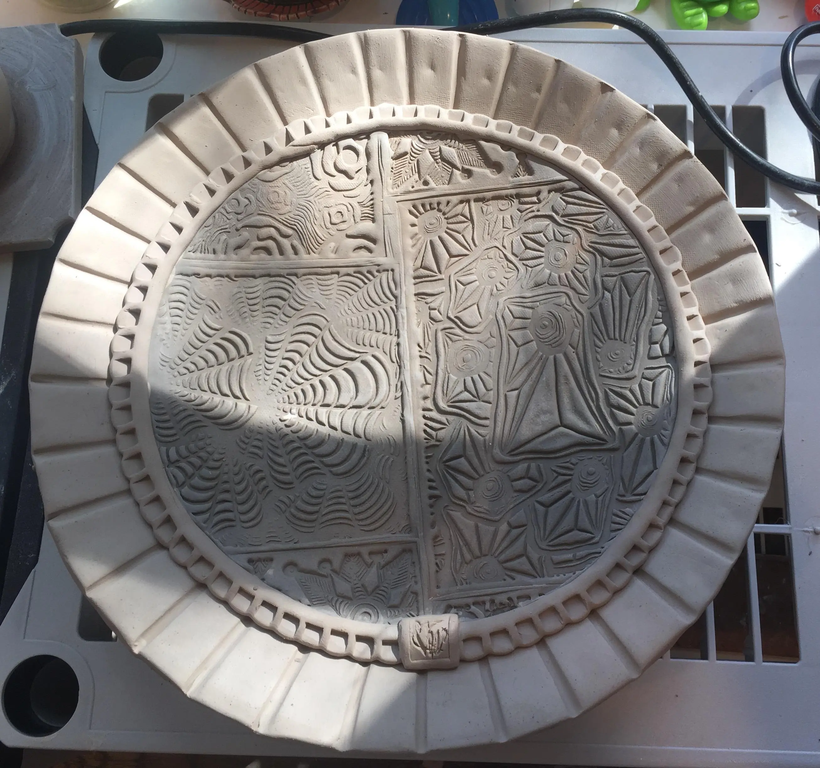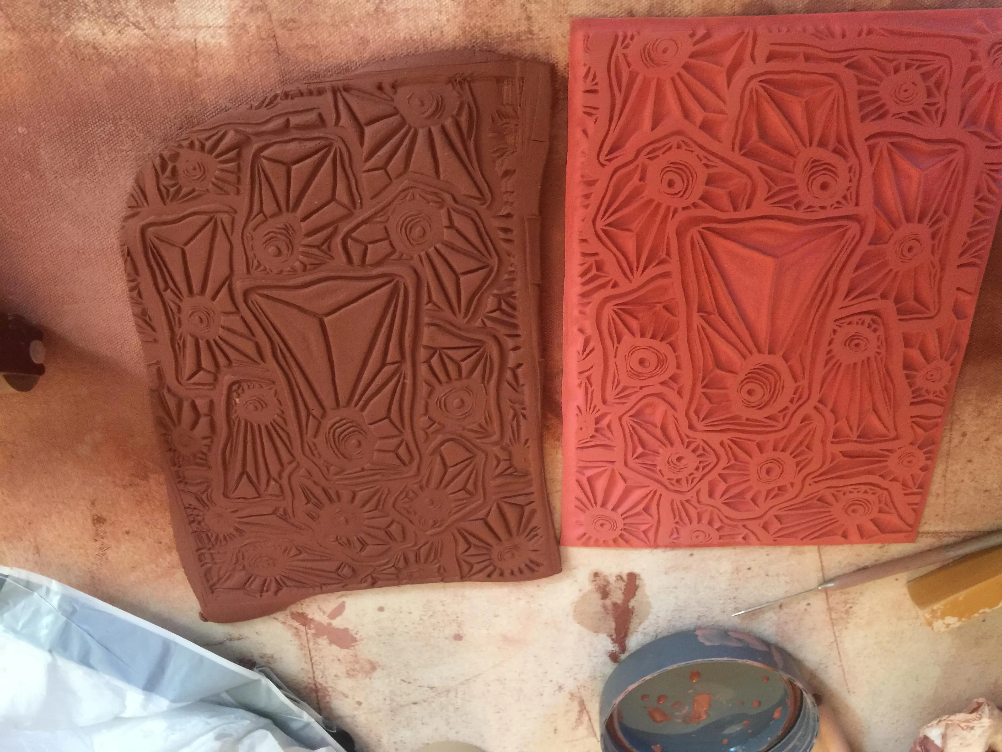 This is a handmade, hand drawn design, 7"x9" reusable rubber texture sheet for making impressions in clay. There is no backer and the flexible rubber allows for crisp and deep imprints on the clay for bold designs.