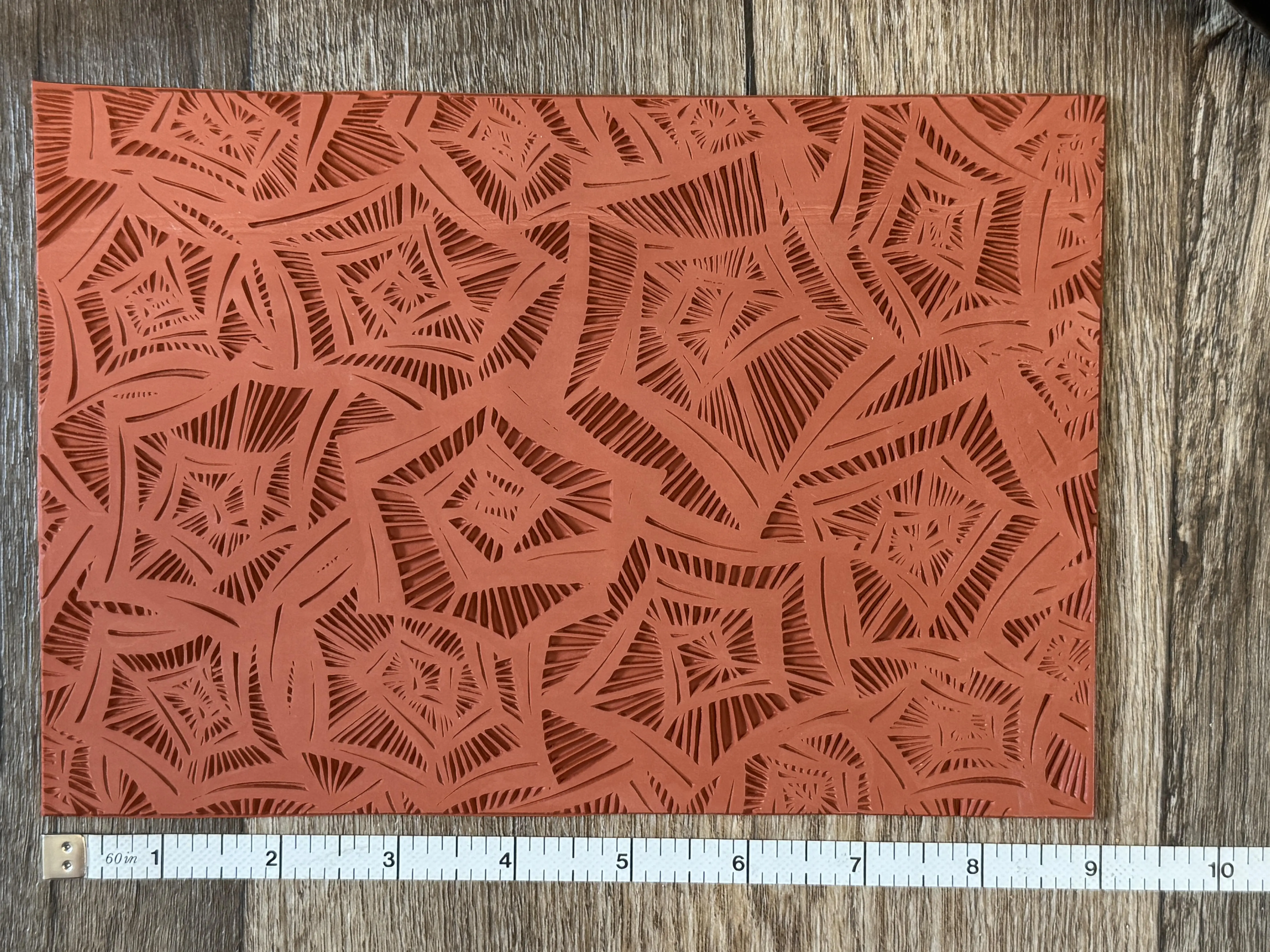 This is a handmade, hand drawn design, size choices are 6x9" rectangle, reusable rubber texture sheet for making impressions in clay. There is no backer and the flexible rubber allows for crisp and deep imprints on the clay for bold designs.