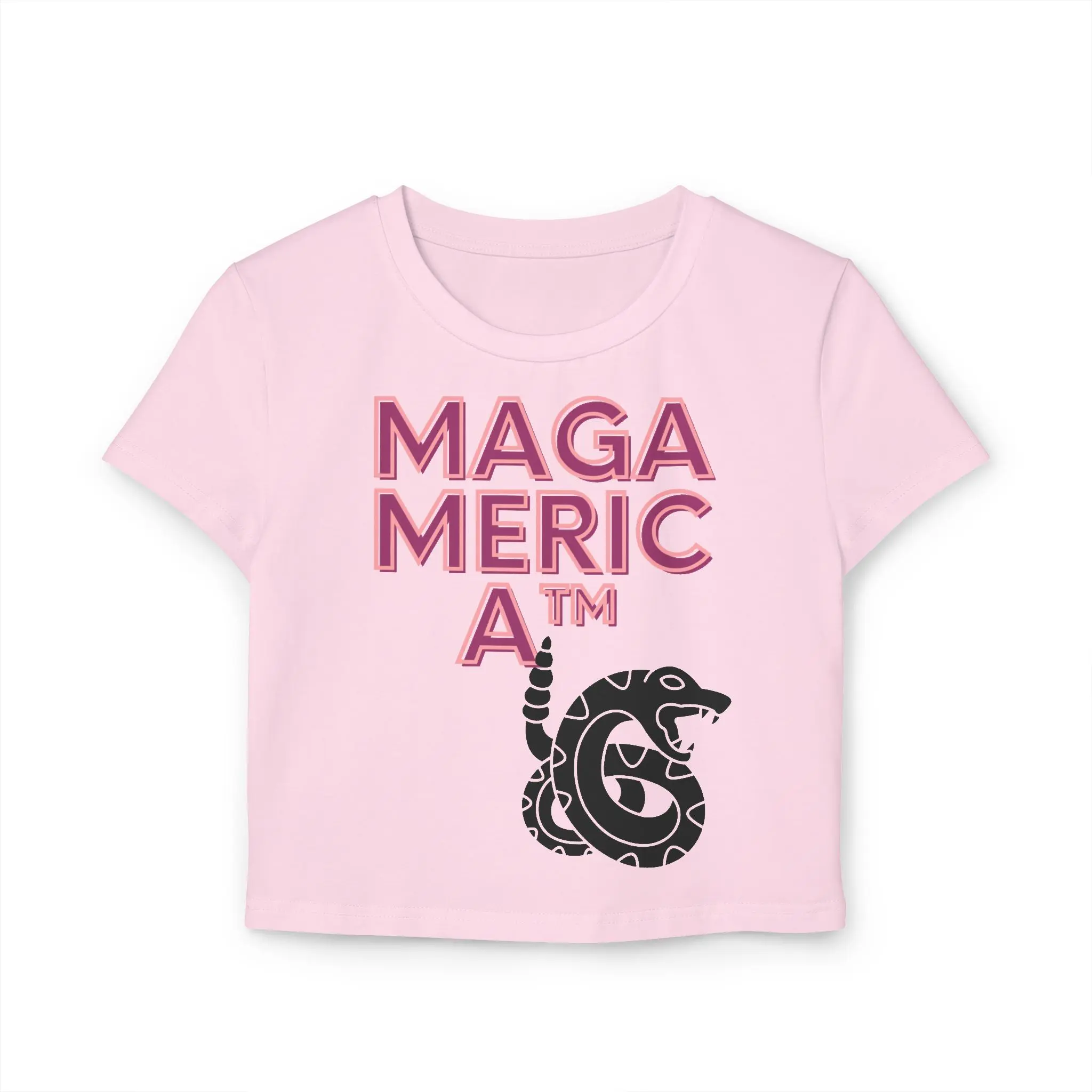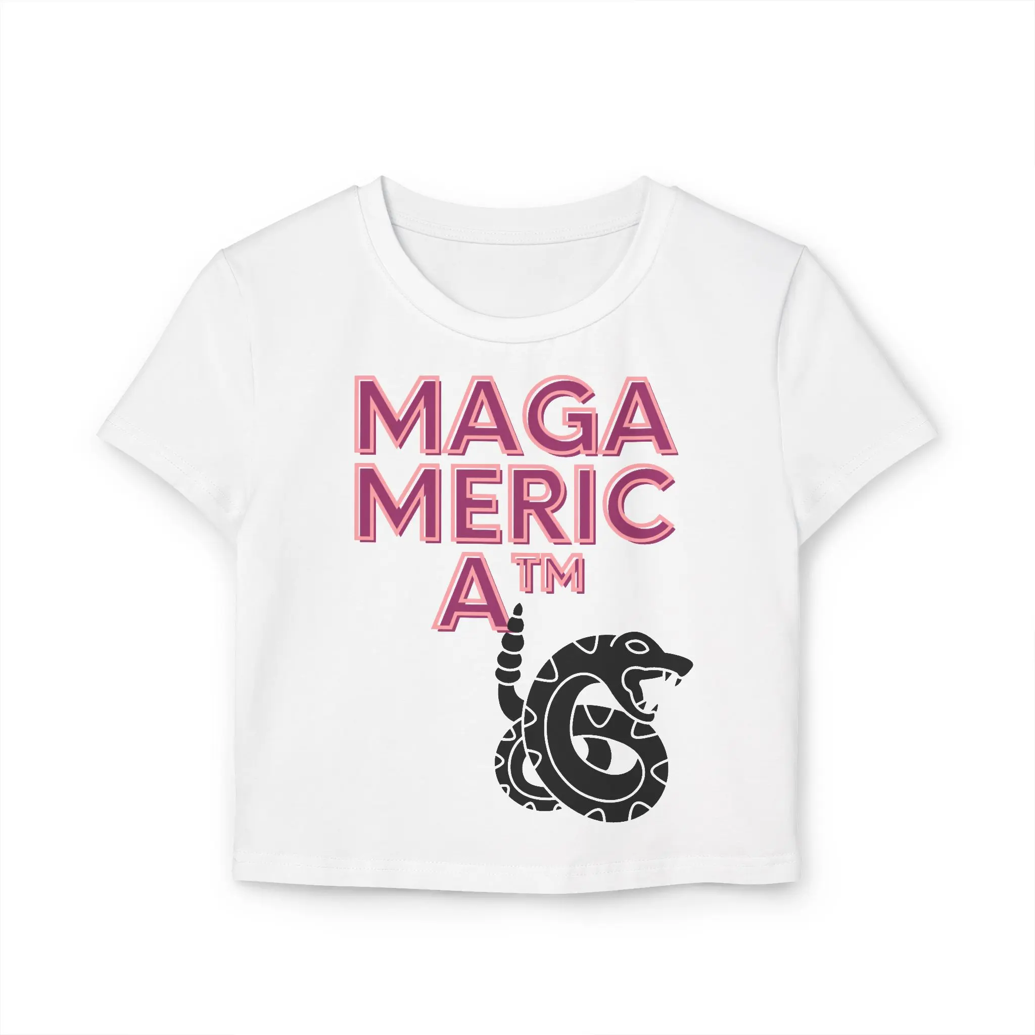 This cropped baby tee carries a bold, statement-making graphic that blends retro typography with a coiled rattlesnake emblem. Lightweight organic cotton sits close to the body, making the tee feel lived-in and easy to layer under a denim jacket or over a high-waisted skirt. Wear it to rallies, street protests, or neighborhood meetups when you want your look to speak before you do — the design reads like a personal declaration, with crisp DTF printing that keeps lines sharp and colors pop. The slim, cropped cut flatters the waist and pairs naturally with casual, activist-minded wardrobes. Soft, breathable fabric and a tear-away label keep comfort front and center, so the tee moves with you from day plans to evening conversations.