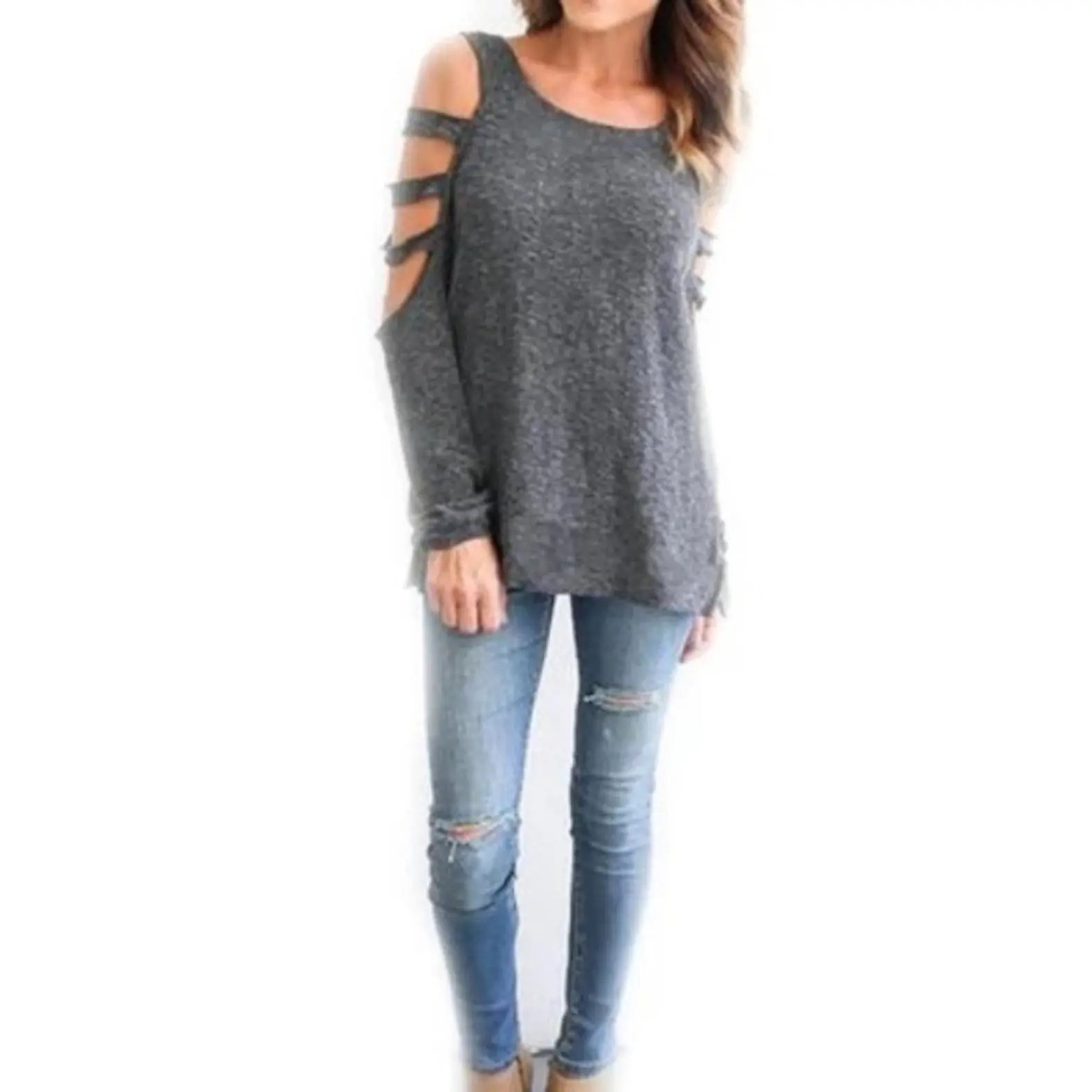 Womens Cut Out Shoulder Top Fabric: Acrylic, Cotton Fit: Slim Fit Color Available: White, Dark Gray Size: S, M