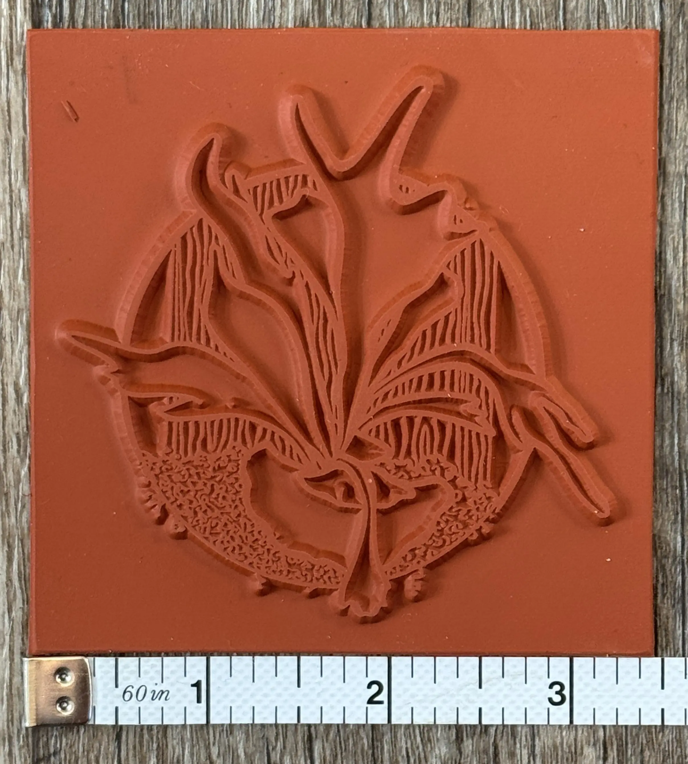 This is a handmade, hand drawn design,3.5"x3.5" reusable rubber texture sheet for making impressions in clay. There is no backer, and the flexible rubber allows for crisp and deep imprints on the clay for bold designs.
