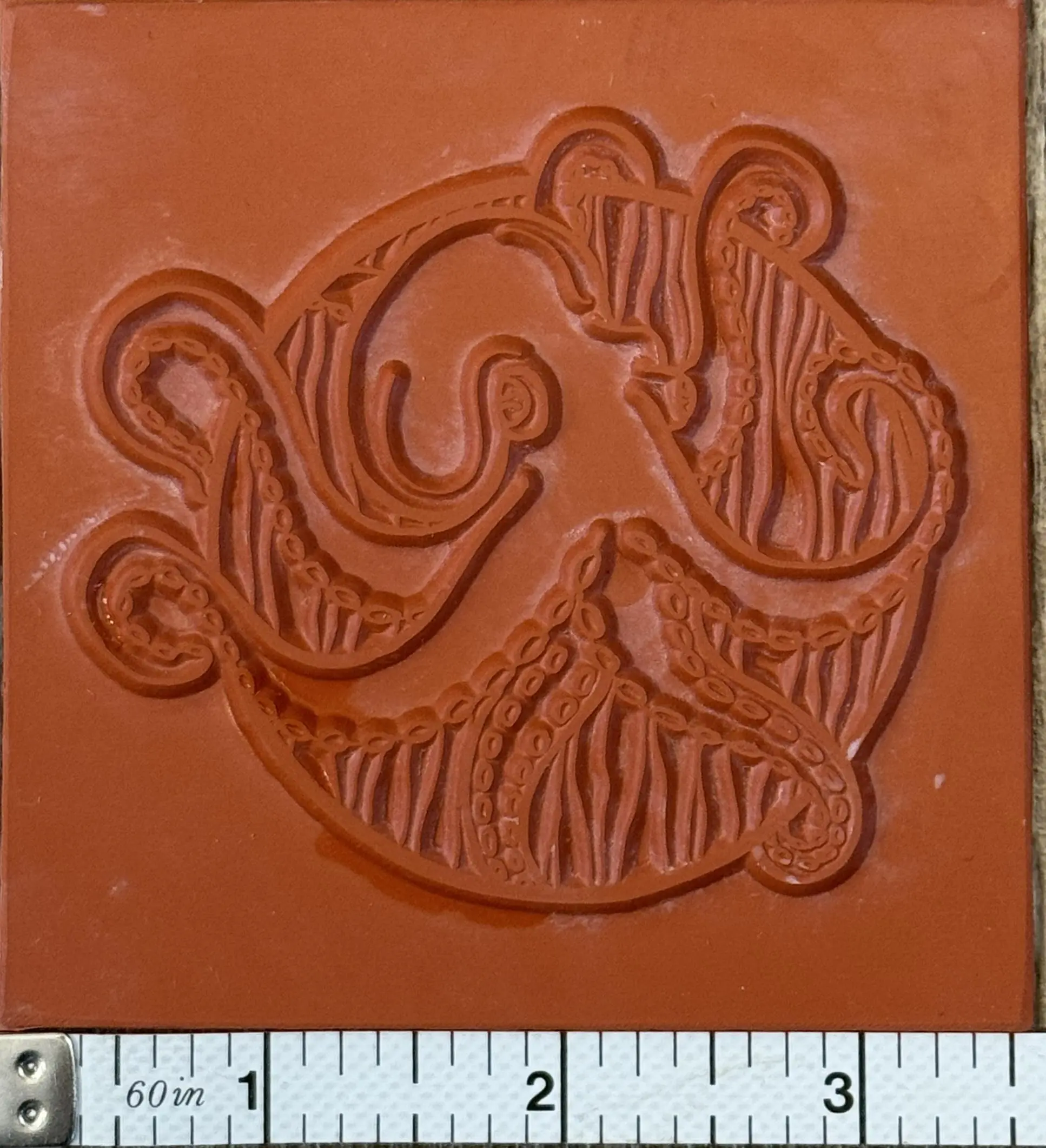 This is a handmade, hand drawn design,3.5"x3.5" reusable rubber texture sheet for making impressions in clay. There is no backer, and the flexible rubber allows for crisp and deep imprints on the clay for bold designs.