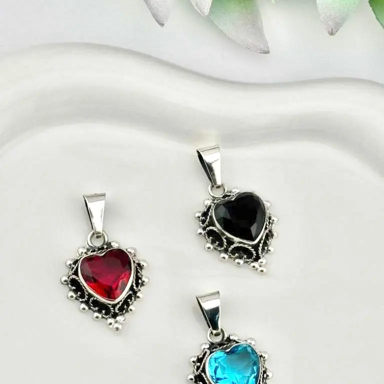 Silver 925 heart pendant | colorful charms Sterling silver | Real silver barroque style