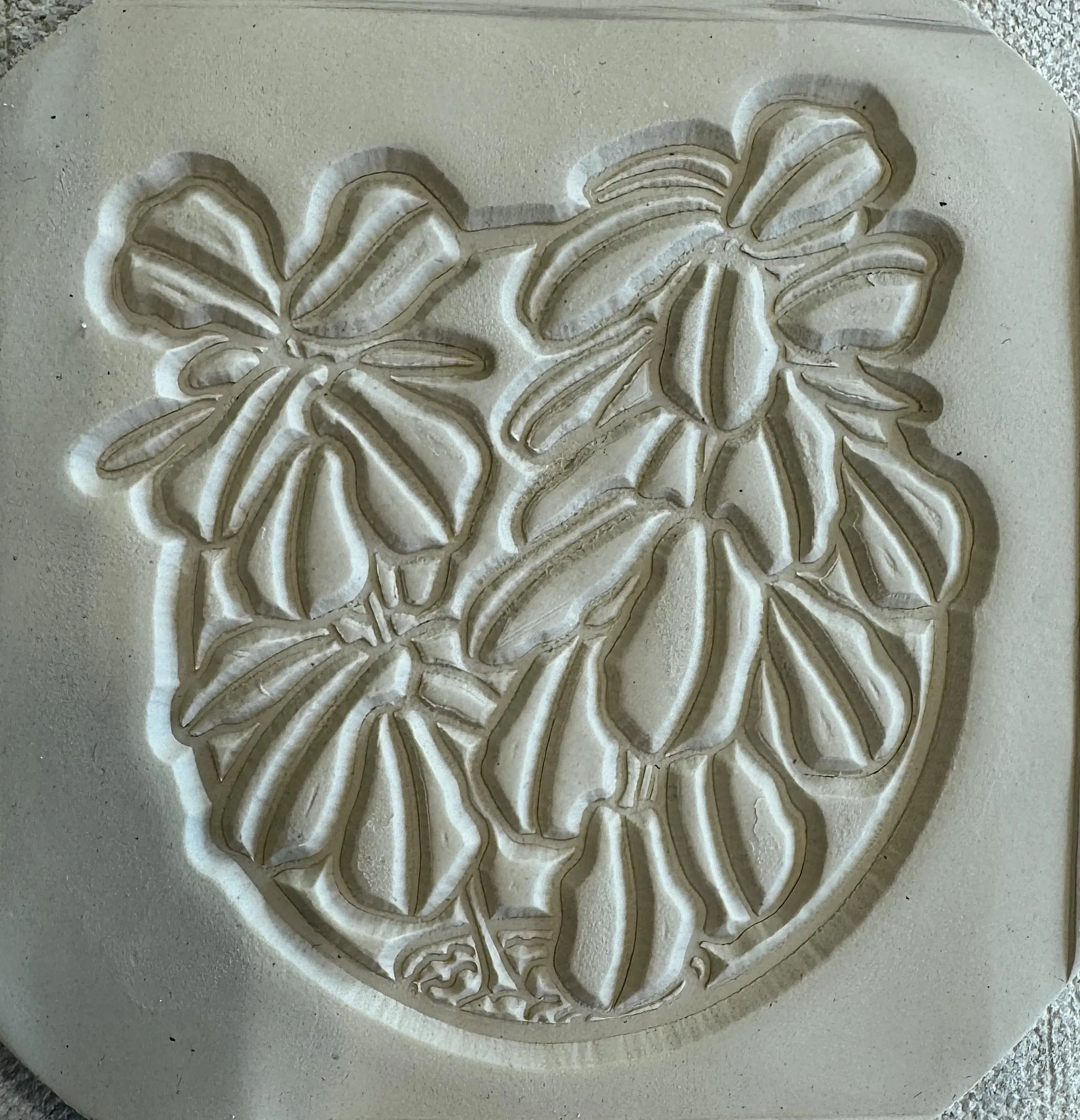 This is a handmade, hand drawn design,3.5"x3.5" reusable rubber texture sheet for making impressions in clay. There is no backer, and the flexible rubber allows for crisp and deep imprints on the clay for bold designs.