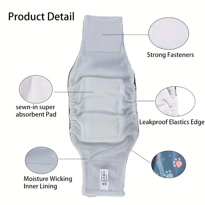 The diaper ensures comfort and absorbency for your dog. The combination of materials provides a practical solution for potty training. It's easy to wash and reuse, making it a convenient choice for pet owners.