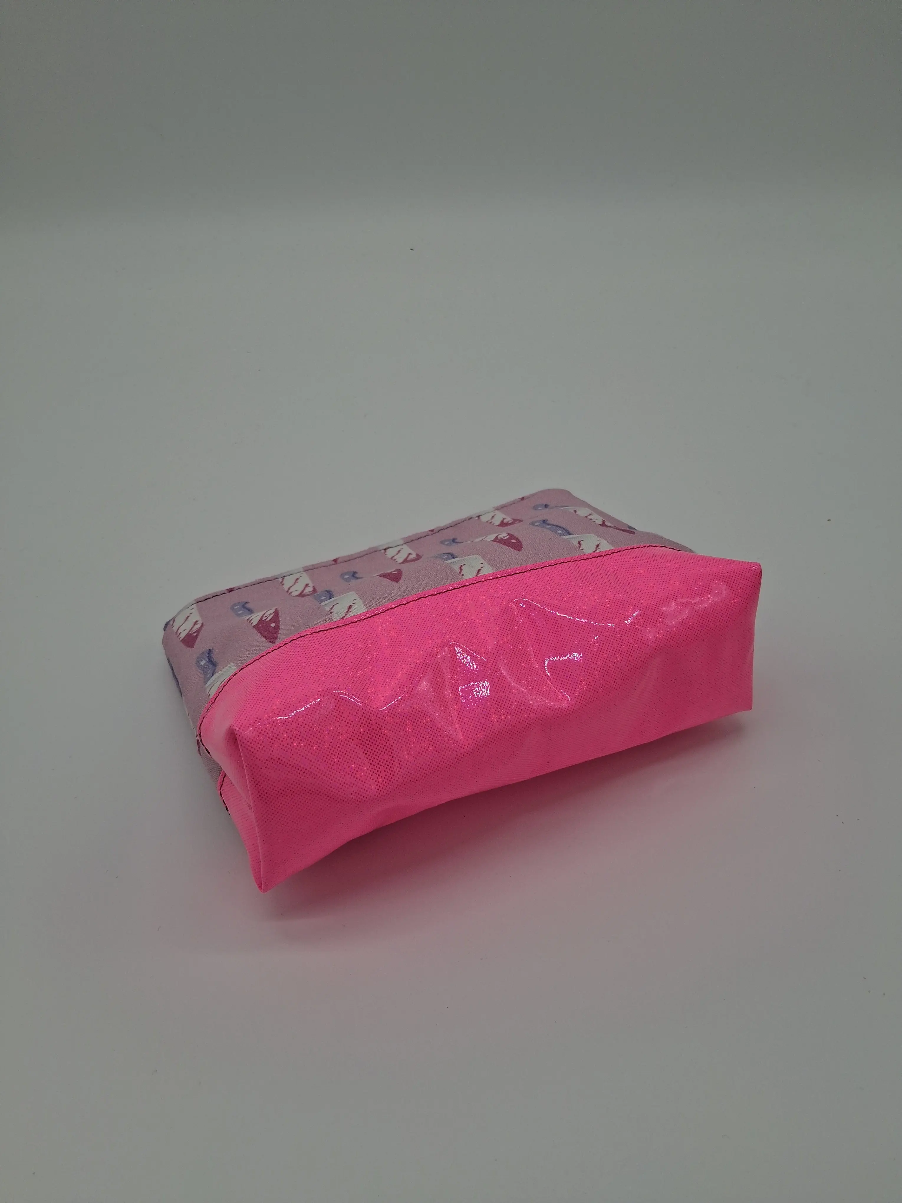 This cute little pouch has many different utilizations. The vinyl bottom gives structure to remain upright while the cotton offers enough flexibility to fit in a wide array of bags. Use it to keep your makeup safe, your office supplies together or your monthly moon supplies close by. A fitted zipper keeps it all securely inside.