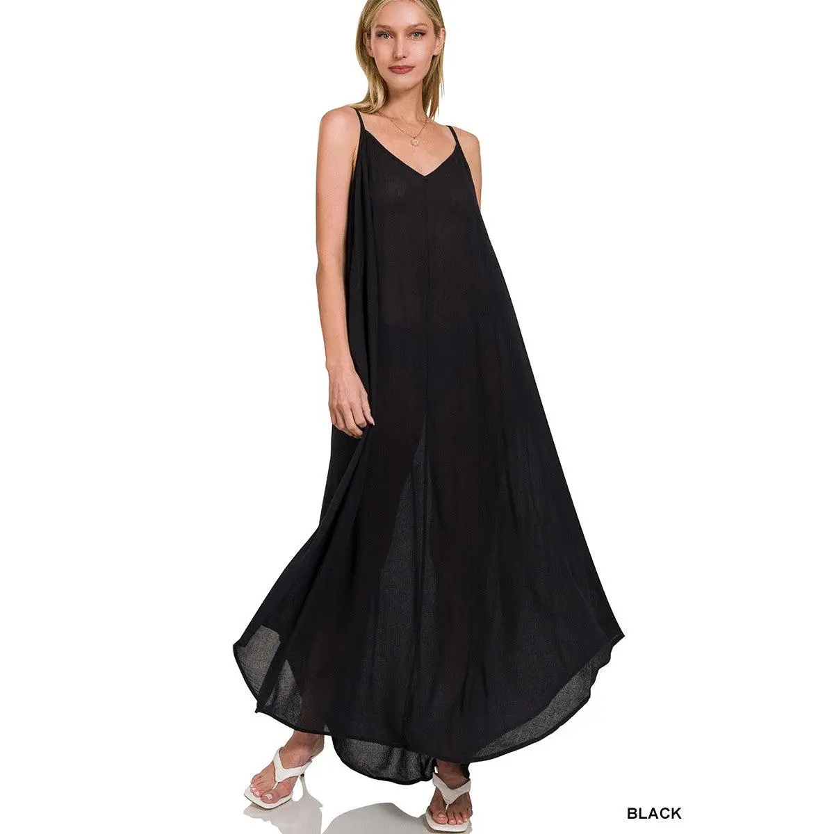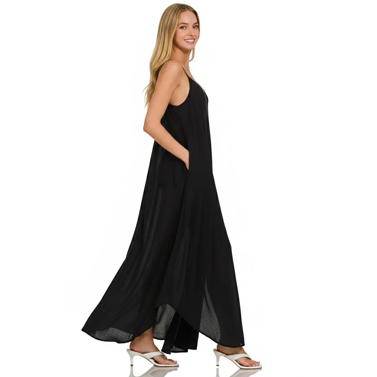 The Woven Crinkle Cami Maxi Dress with Side Pockets is a stylish and practical choice for any occasion. The woven crinkle fabric adds a textured and airy look to this maxi dress. The cami-style top is perfect for warm weather, while the maxi length offers a flowy and elegant silhouette. The side pockets add functionality and convenience to this chic dress. Whether worn with sandals for a casual day out or dressed up with heels for a special event, this dress is sure to make a statement with its combination of style and comfort.