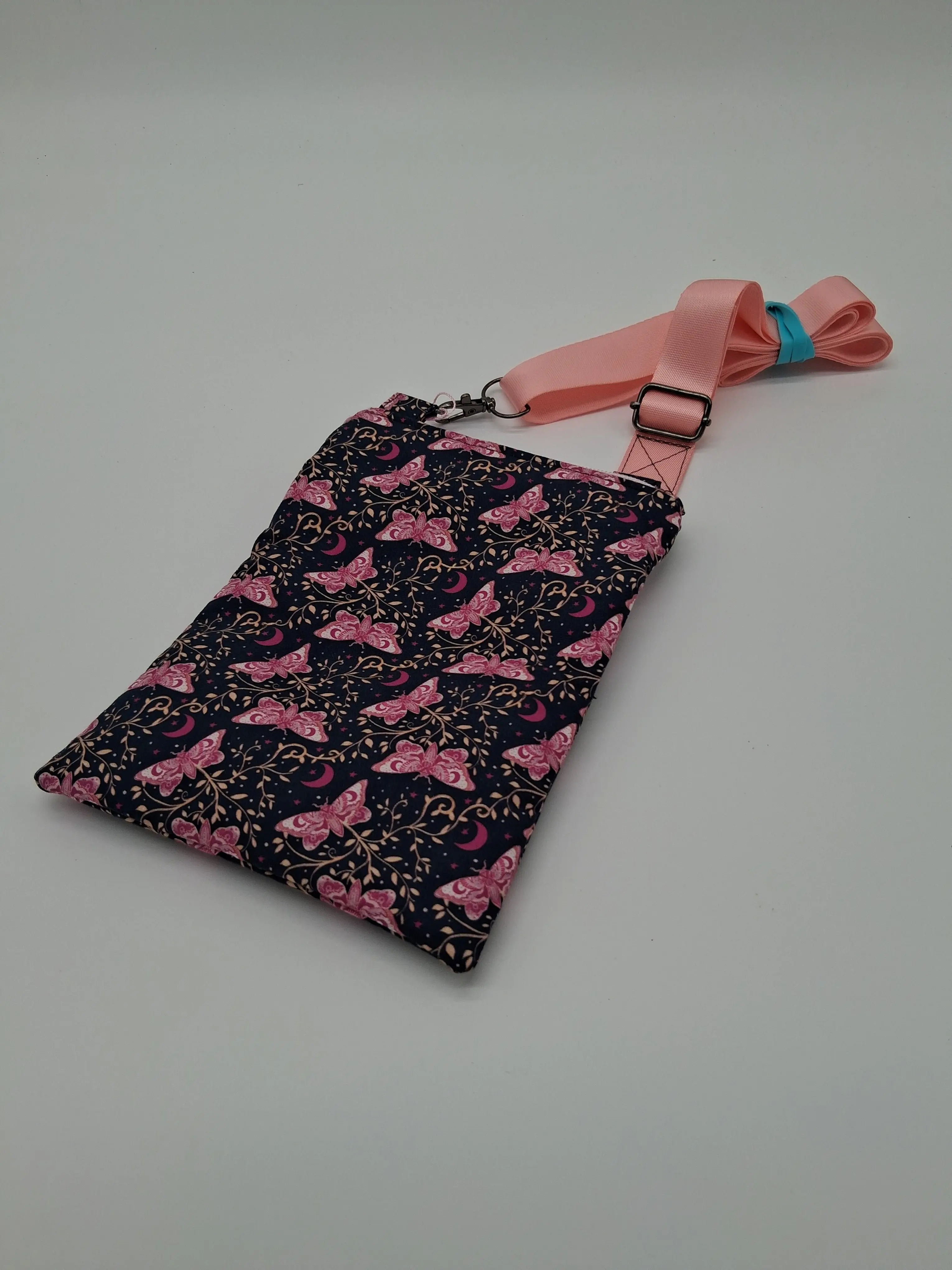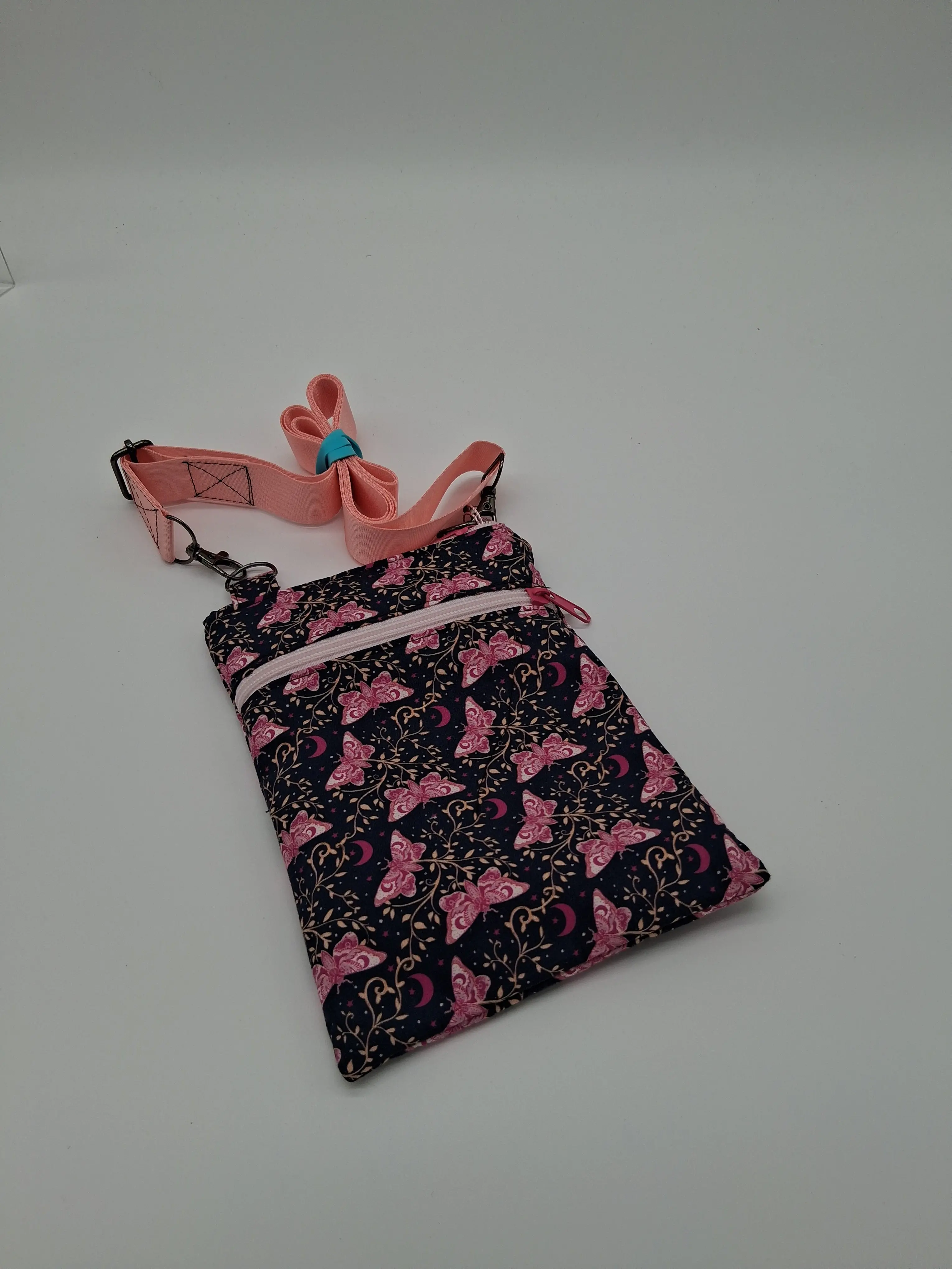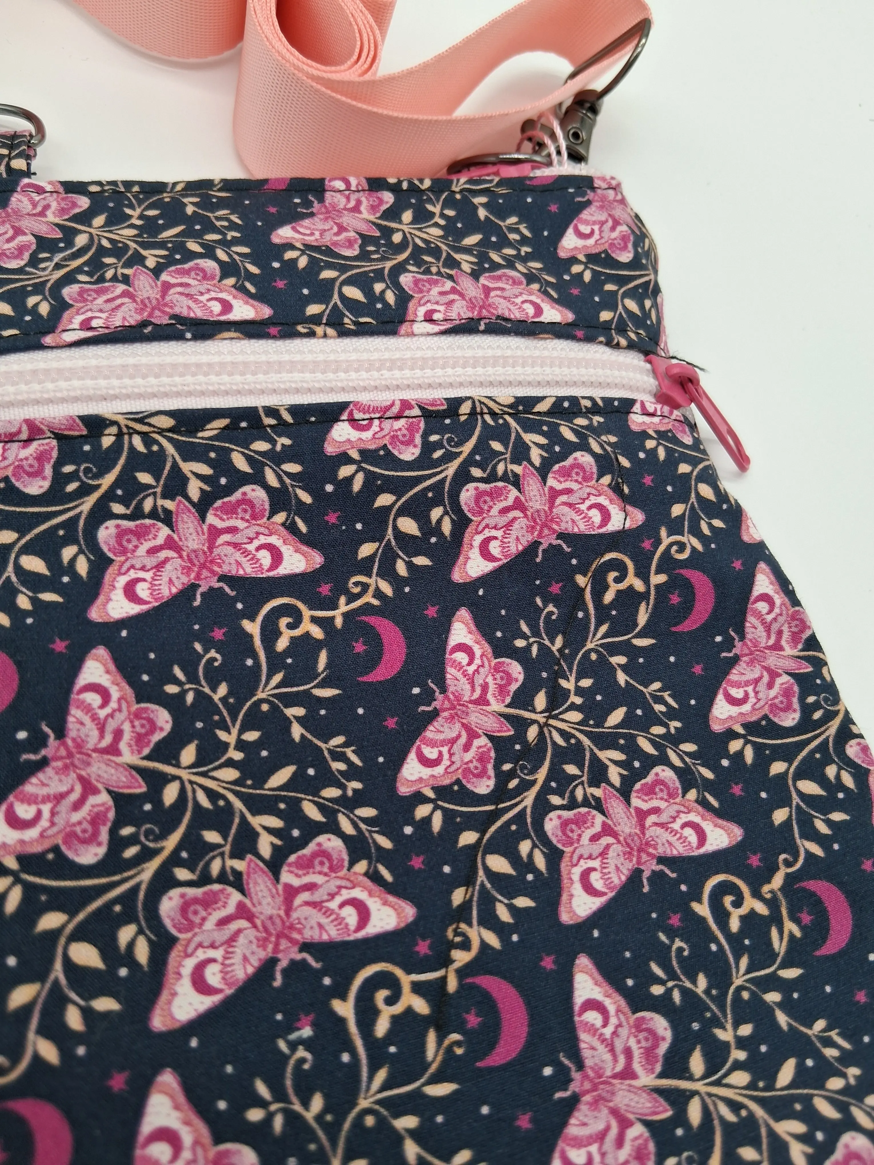 This lovely mini crossbody features a small separate zipper pocket in the front, a slim profile and an ability to machine wash!