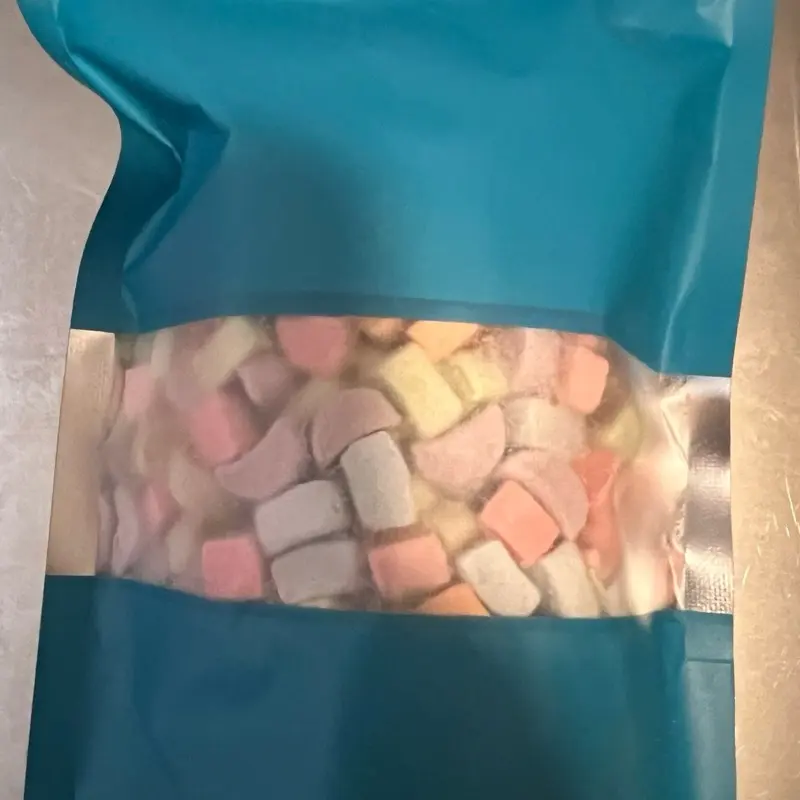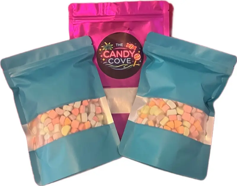 Your bag will be filled with "Pixie Pillows" also known as cereal marshmallows that are a rainbow of colors. The bag will weigh approximately 2.5 to 3 ounces.