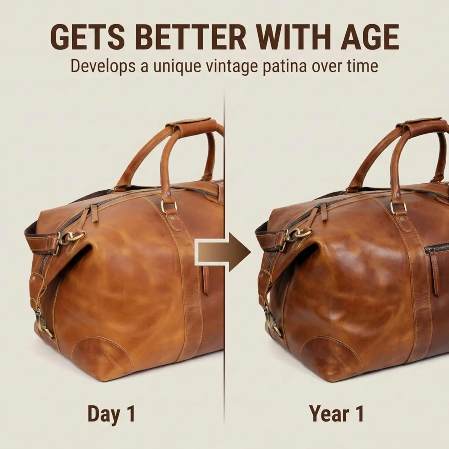 ·FULL GRAIN LEATHER BUILD: Made from genuine buffalo full grain leather that supports daily travel needs while developing a natural vintage patina with continued use