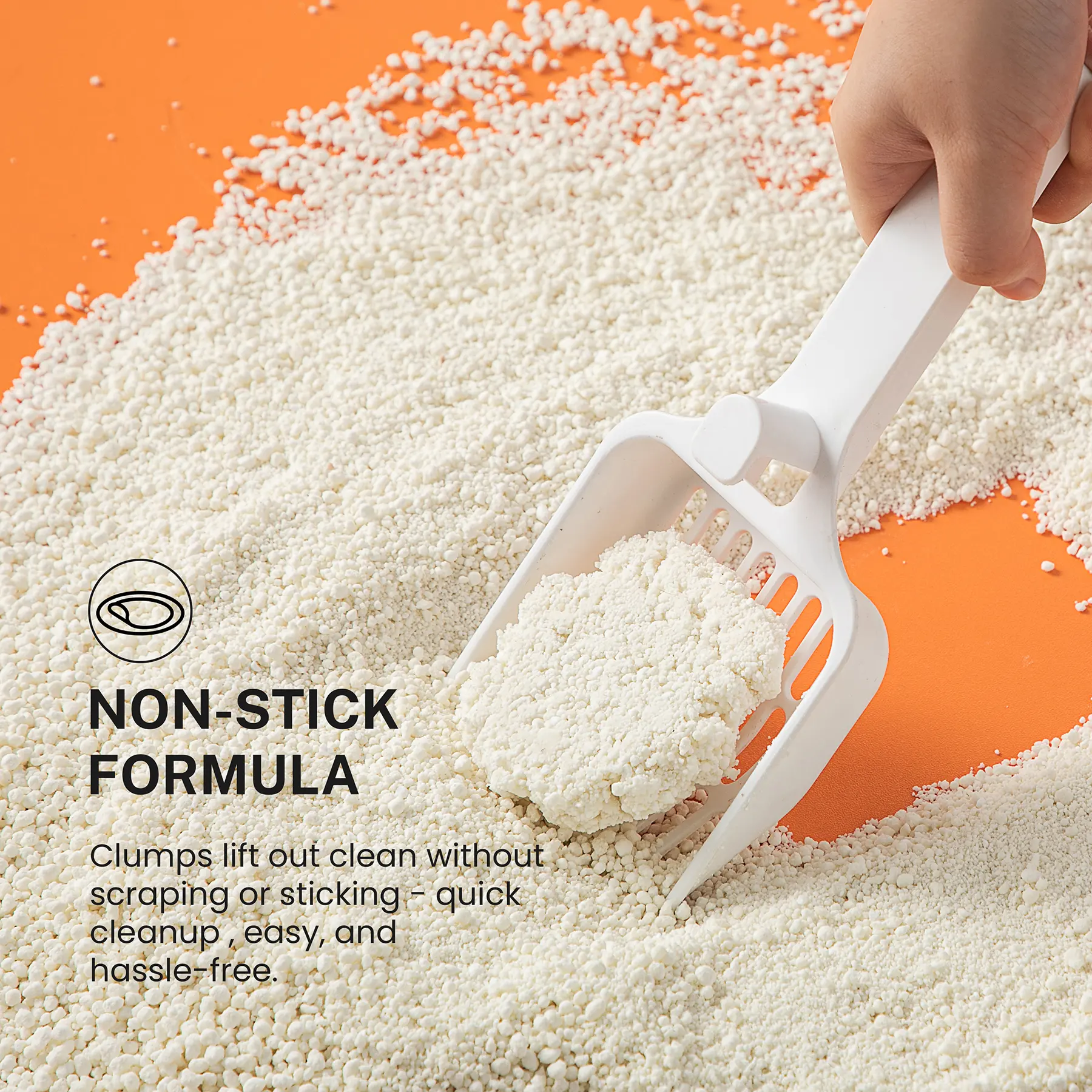 Forms clean clumps that lift easily without sticking to the litter box. Makes scooping faster and helps keep the litter box cleaner with less scraping.