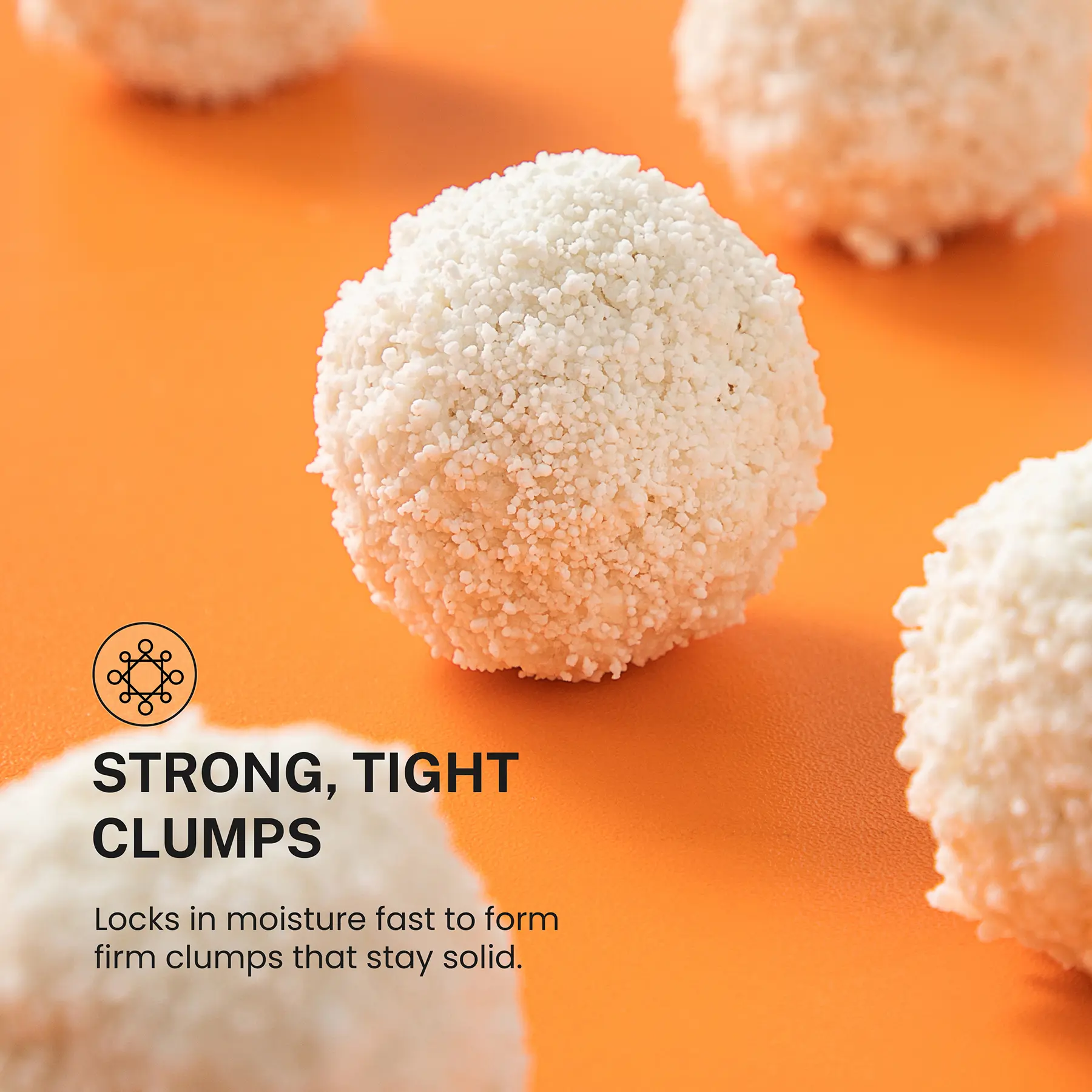 Quick-absorbing granules lock in moisture and form tight, solid clumps. Helps prevent liquid from spreading and keeps the remaining litter fresh longer.