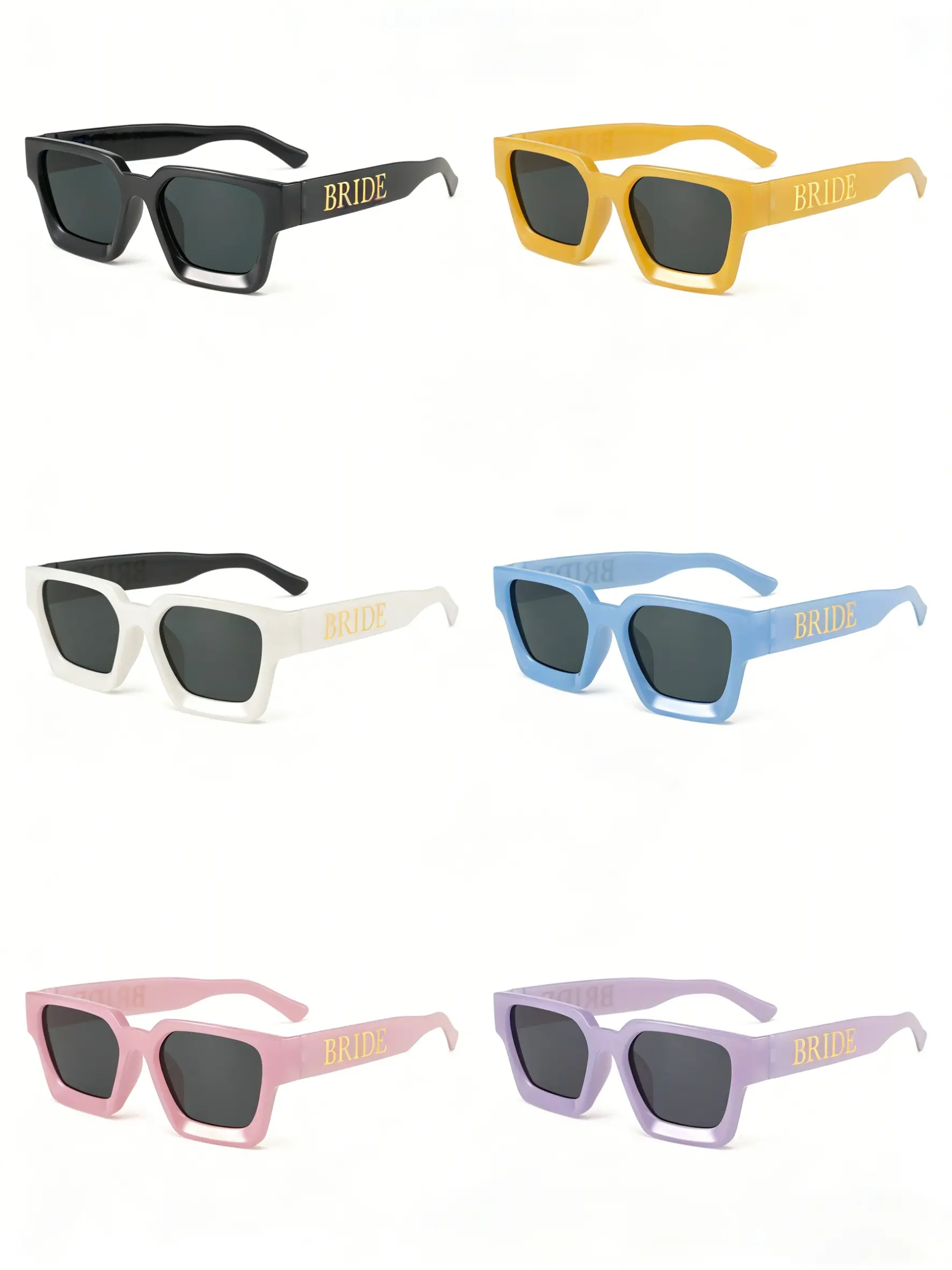 5. Women's Bride Sunglasses, Letter Design, Rectangular Small Frame, Multi-Color Options, Elegant Wedding Accessory, Party Style
