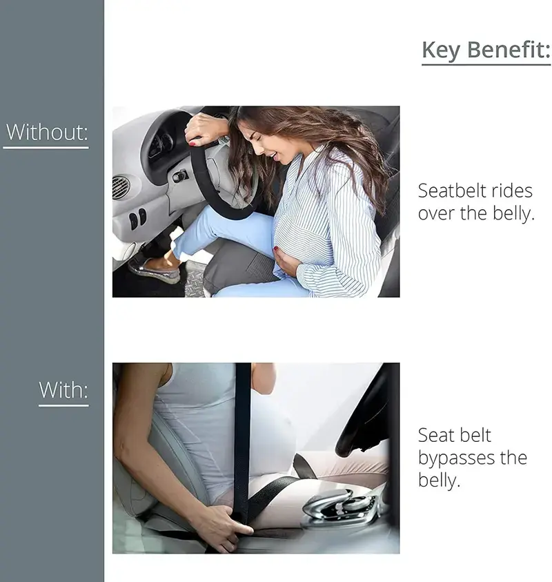 【Designed for Comfort】The seat belt regulator for pregnant women transfers the force acting on the abdomen to the thigh. Releases the abdomen from compression, protects you and your unborn baby.