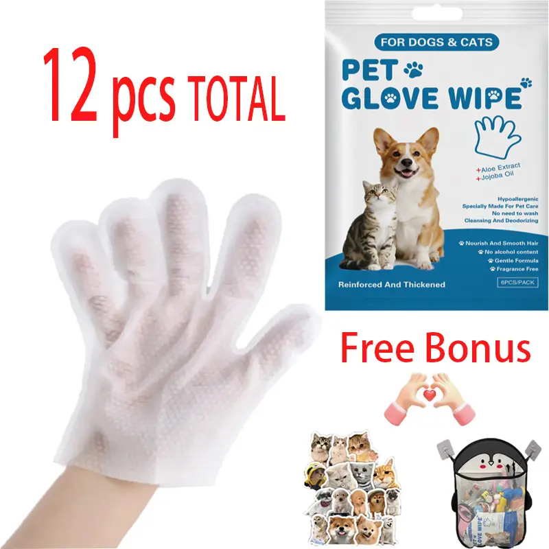 12 PCS Unscented Extra Thick Pet Bathing for Dogs & Cats, Dog Washing Gloves, Cleaning & Deodorizing Grooming Gloves for Daily Care and Traveling with EDI Water, Glycerin, Aloe Extract bath wipe