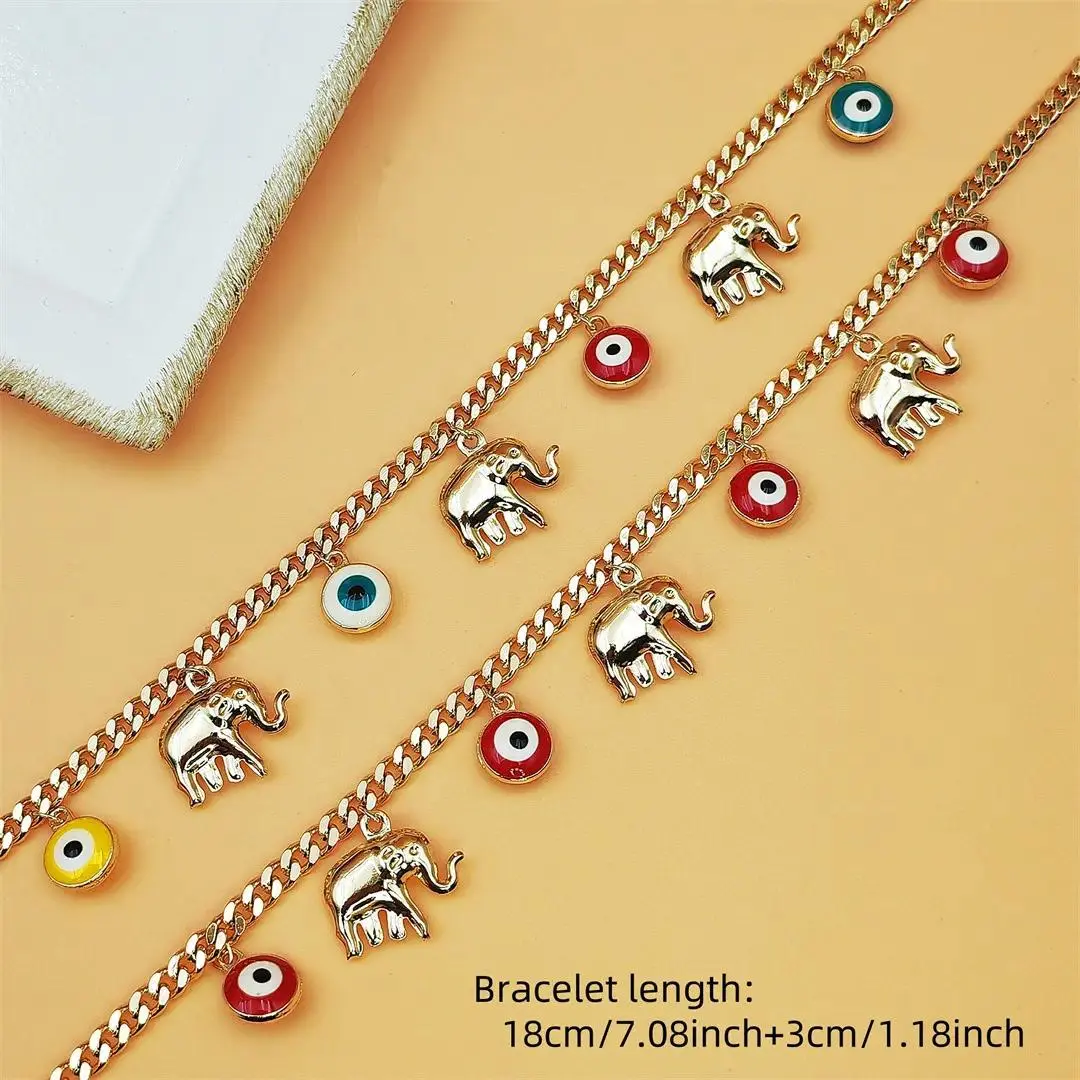 ✨ Stylish Accessory: This anklet features a gold chain with devil's eye charms and baby elephant pendants. It adds a touch of elegance to any outfit. Perfect for parties, birthdays, or daily wear. The adjustable length ensures a comfortable fit for all.