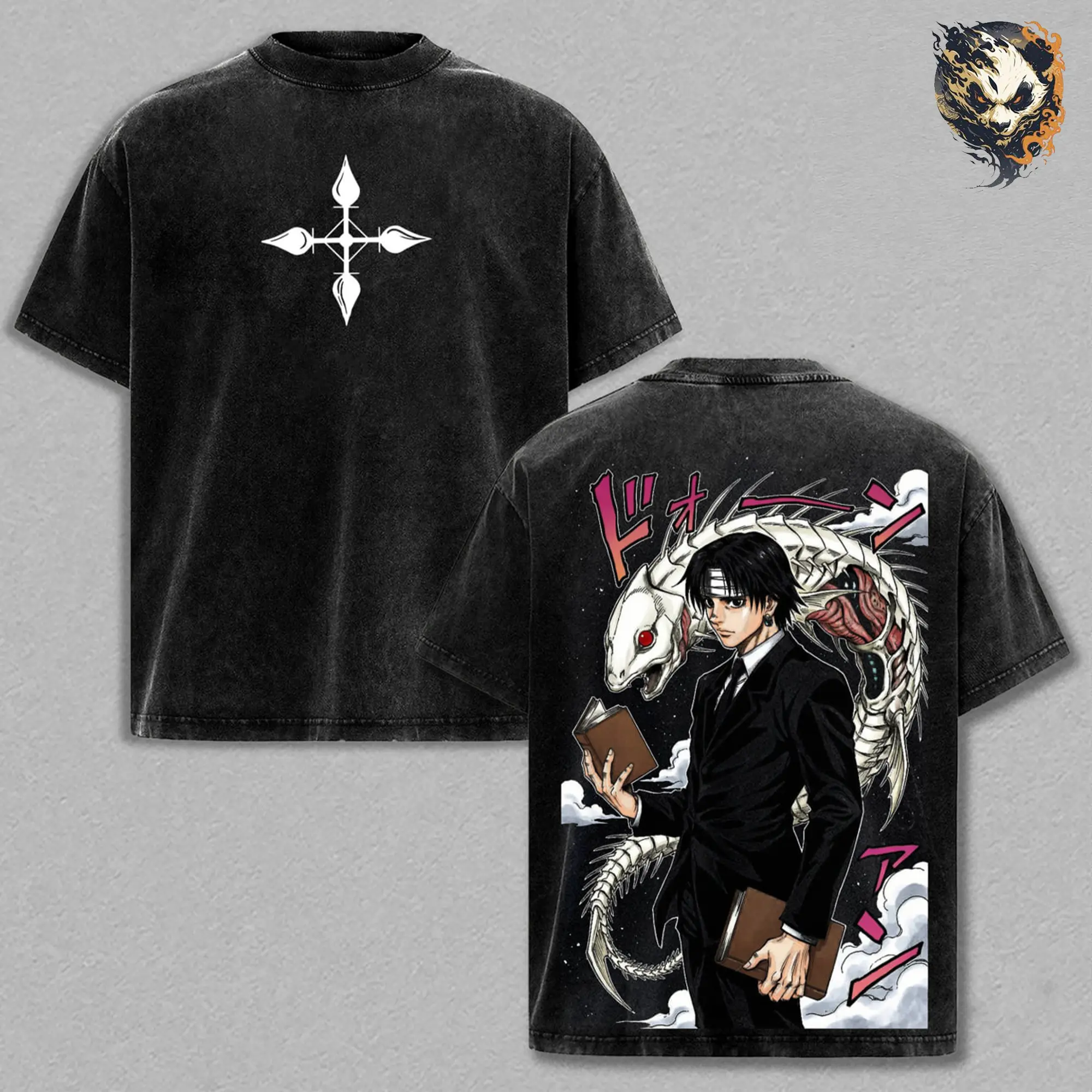 Chrollo Lucilfer Washed Tee – Hunter x Hunter Anime Manga T-Shirt, Skill Hunter Ability Bandit’s Secret Stolen Nen Powers Strategy Master Combat Genius Vintage Graphic, Anime Battle Streetwear Oversized Tee for Hardcore Fans