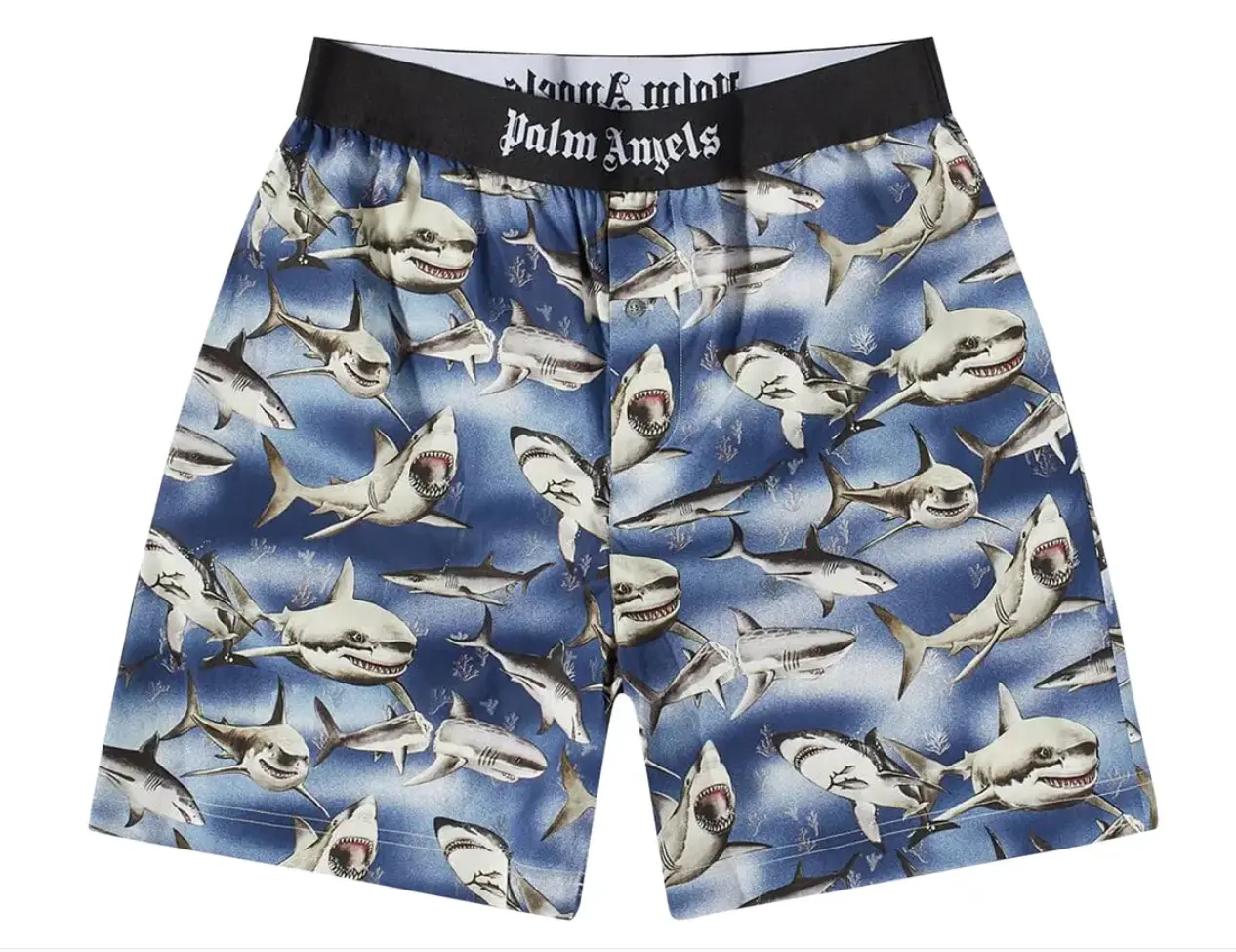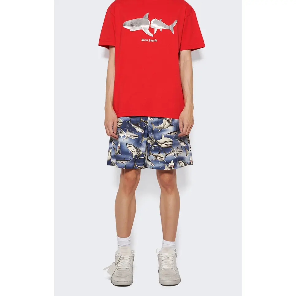 Palm Angels Shark Printed Black/Blue "Easy" Shorts Size Medium