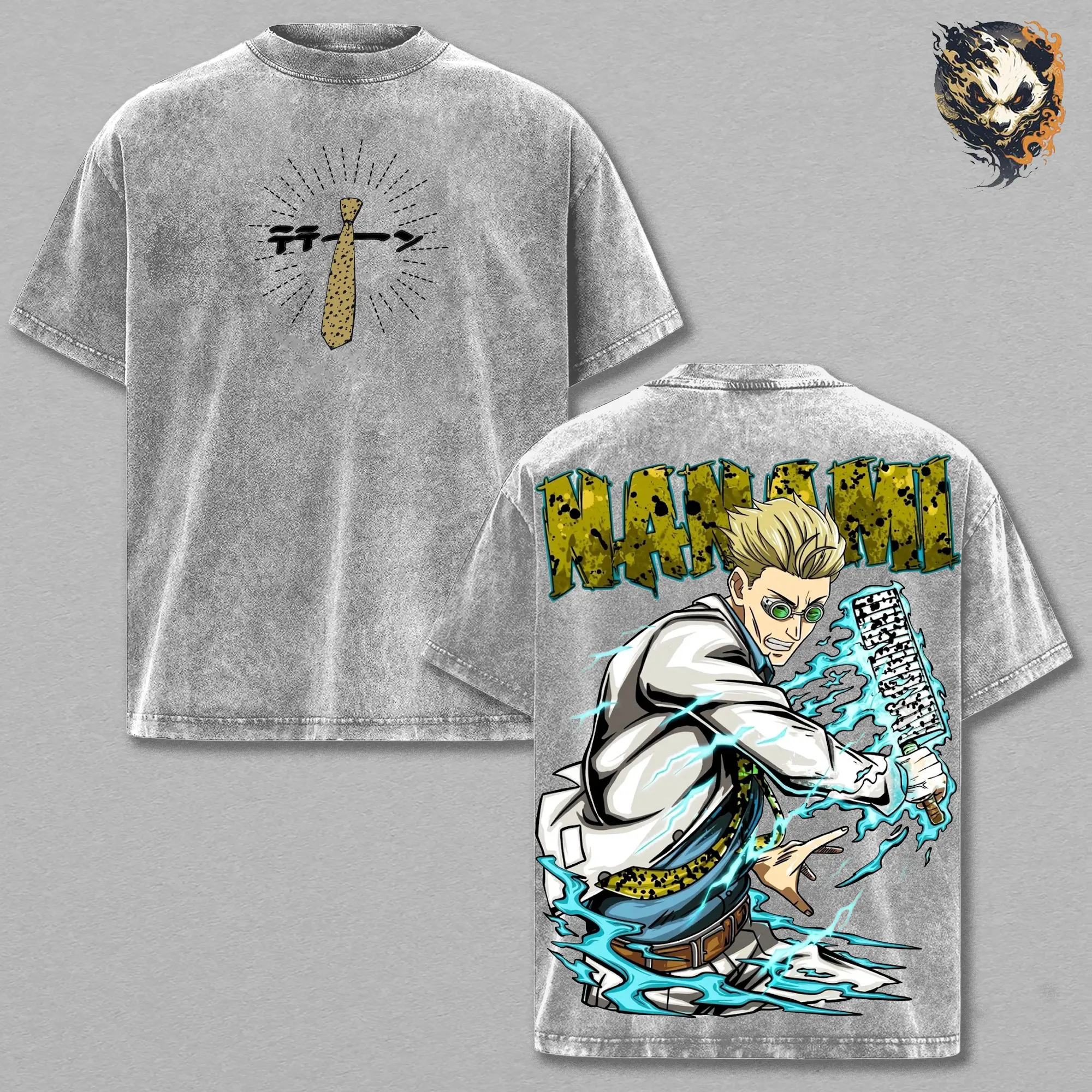 Nanami Anime Washed Tee – Jujutsu Kaisen Vintage Manga Graphic T-Shirt, Minimalist Anime Aesthetic Salaryman Vibe Calm Cool Streetwear, Oversized Trendy Otaku Gift, Hypebeast Anime Fashion Tee