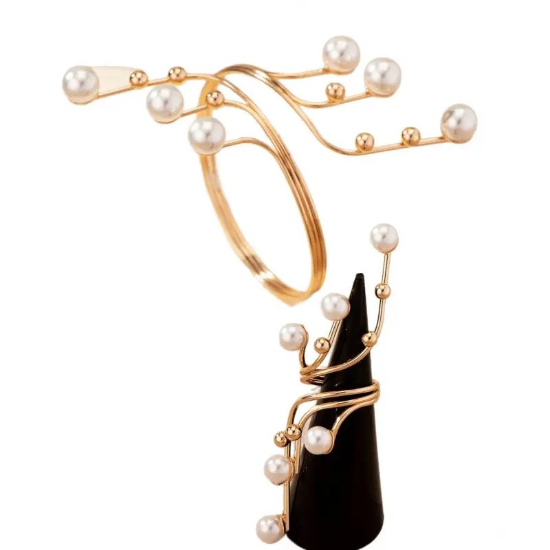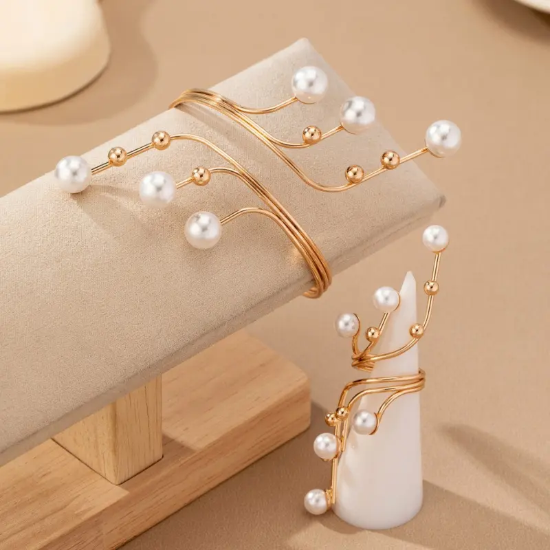 ·UNIQUE DOUBLE IMPACT:Get the look of multiple bracelets and a matching ring in ONE set.The wrap-around cuff design with layered pearls creates a stunning, high-value appearance instantly.