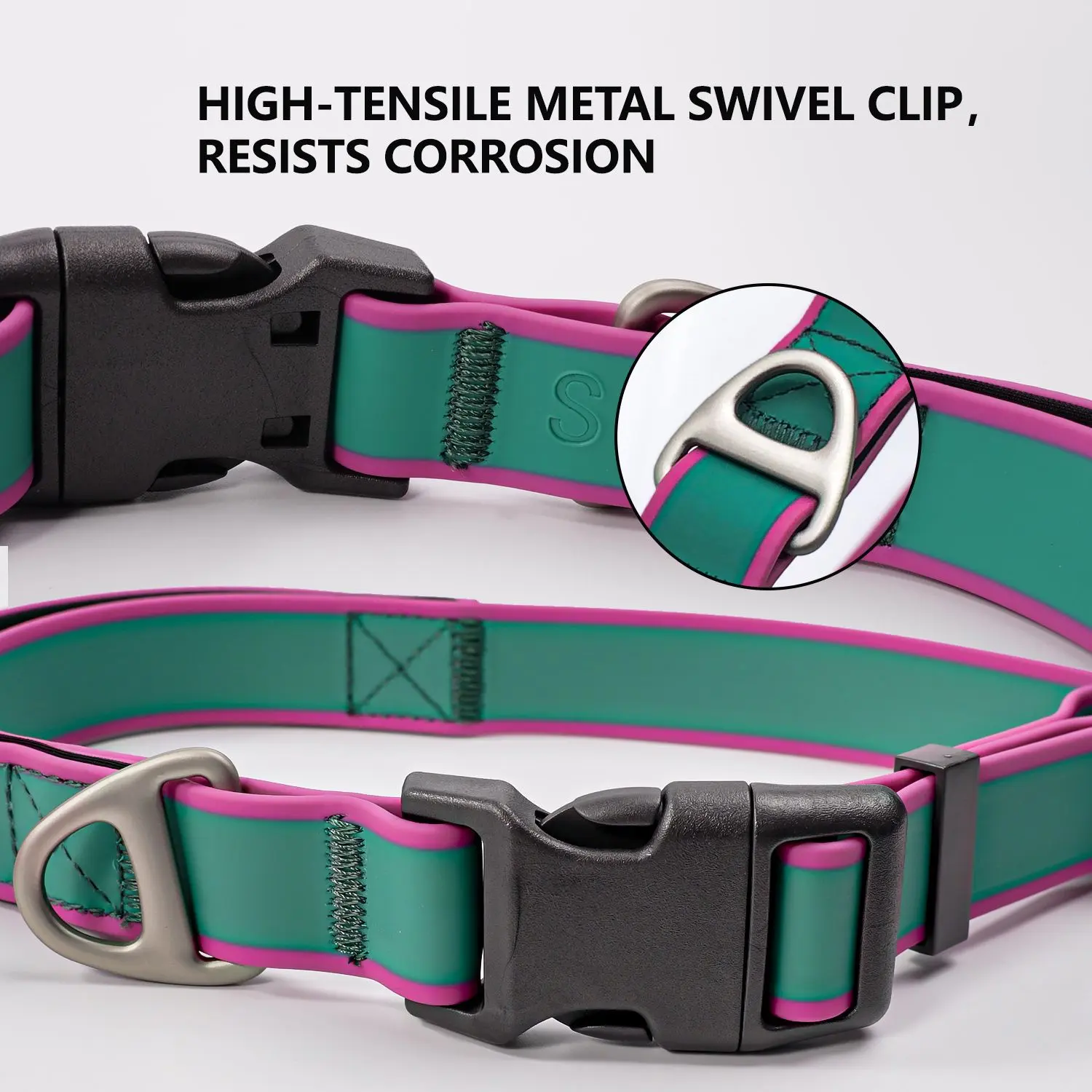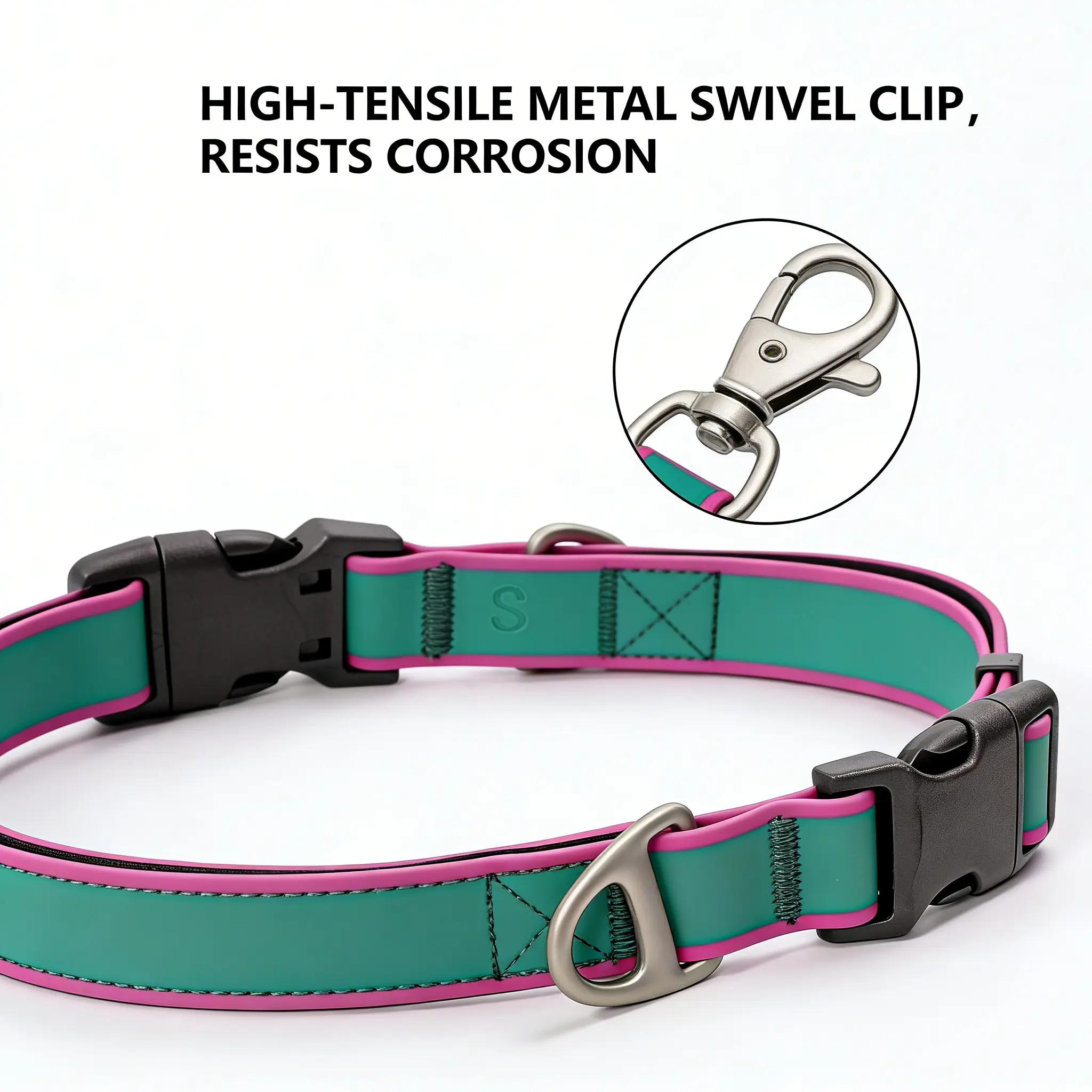 Stylish and Functional Green & Pink Color Block Dog Collar – Adjustable, Waterproof, and Traction-Friendly for Small & Medium Dogs poppy swivel leash freedom harness