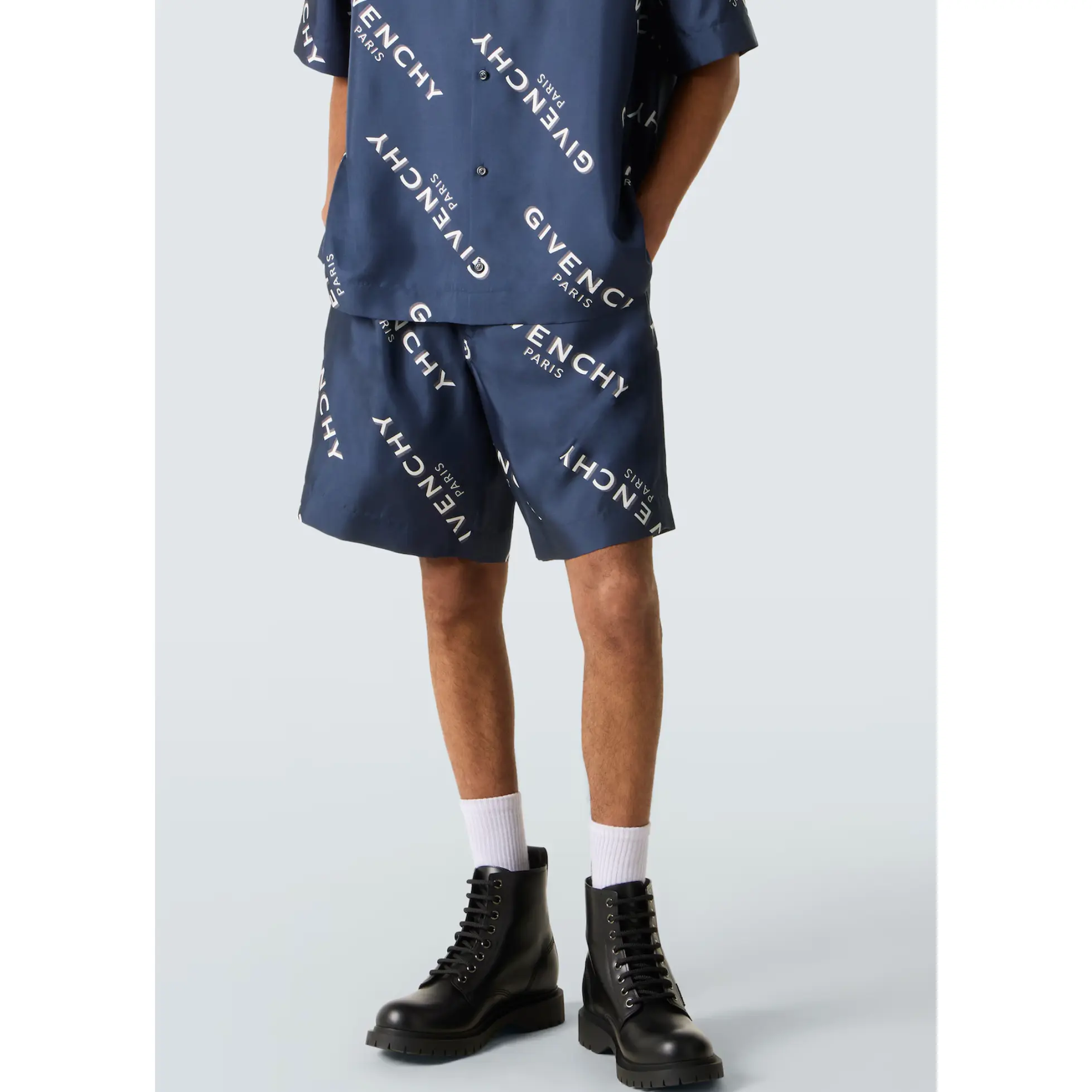 Givenchy Paris Navy Shadow Silk Bermuda Shorts Size 50