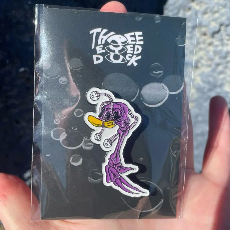 Three Eyed Duck - Purple skeleton duck enamel pin - streetwear