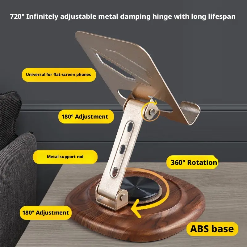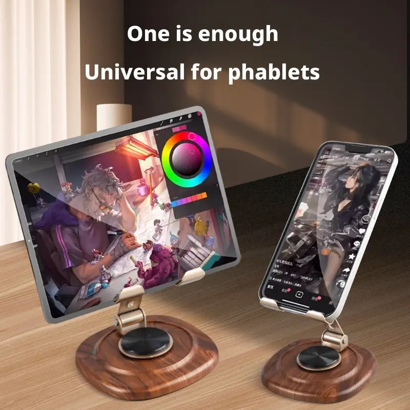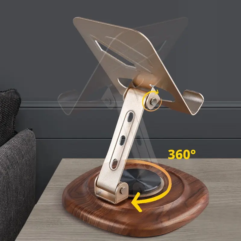 Metal Wood-Grain Stand|360° Dual-Damper & Foldable