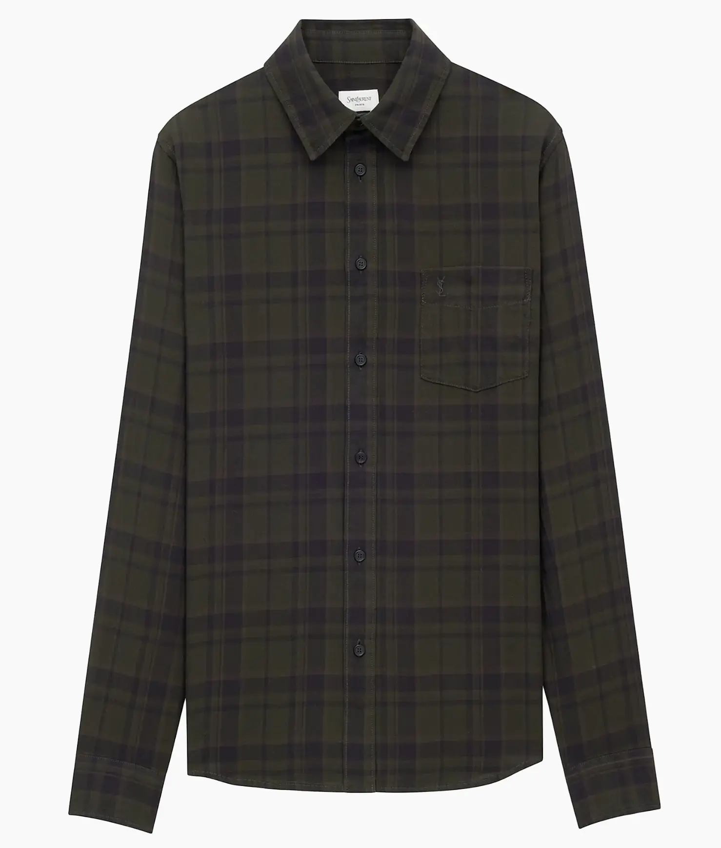 YSL Cassandre Cotton Check "Falkland" Shirt Size Large (MSRP: $1,250)