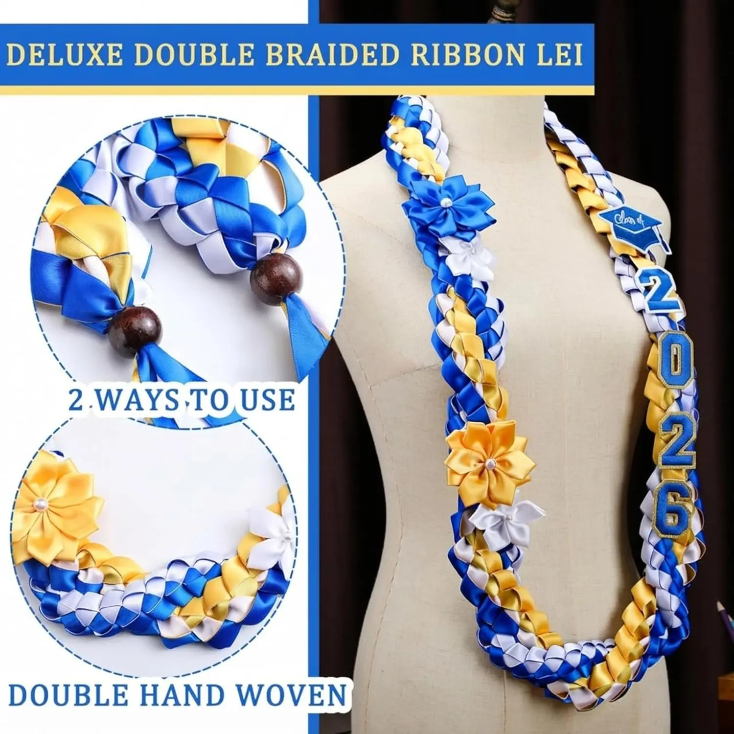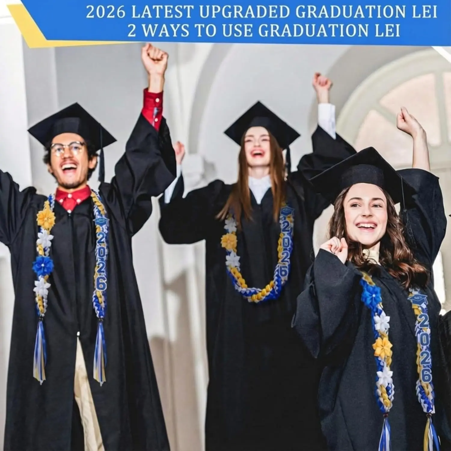 ·Color Coordinated Design: our blue yellow white leis for graduation 2026 fit the representative styles of diverse disciplines such as Science, Mathematics and Nursing; The color scheme targets STEM graduates, Mathematics majors and Nursing candidates, and applies to learners of all grades, helping them showcase distinct academic identities during graduation ceremonies