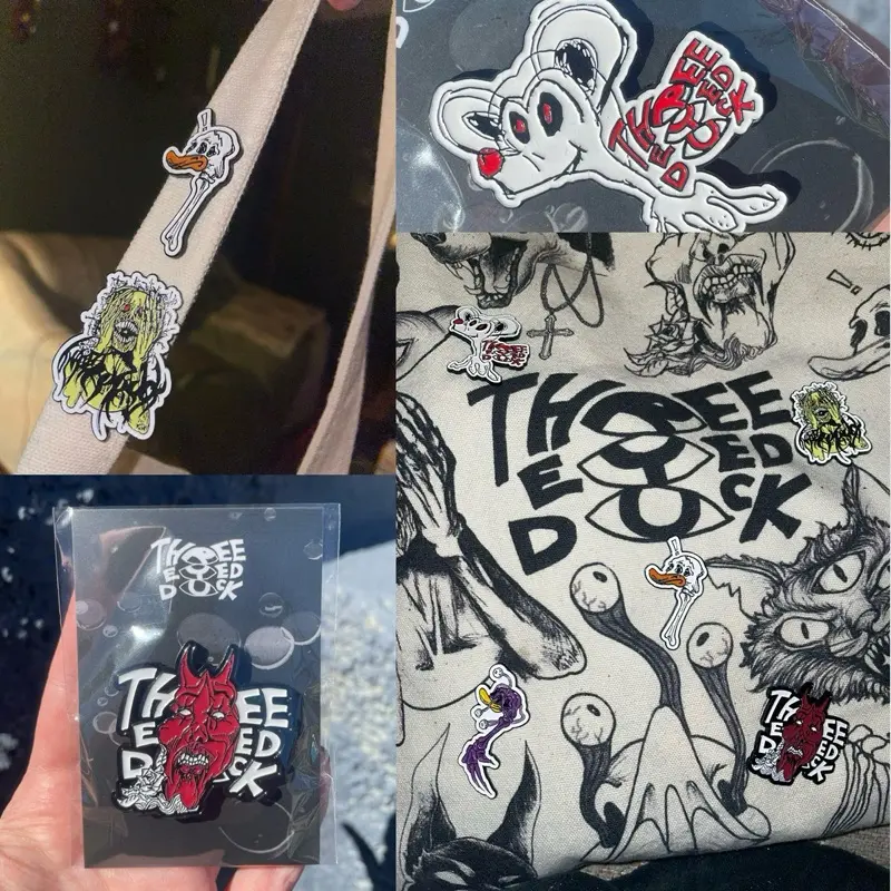 Three Eyed Duck - Red demon logo enamel pin - streetwear