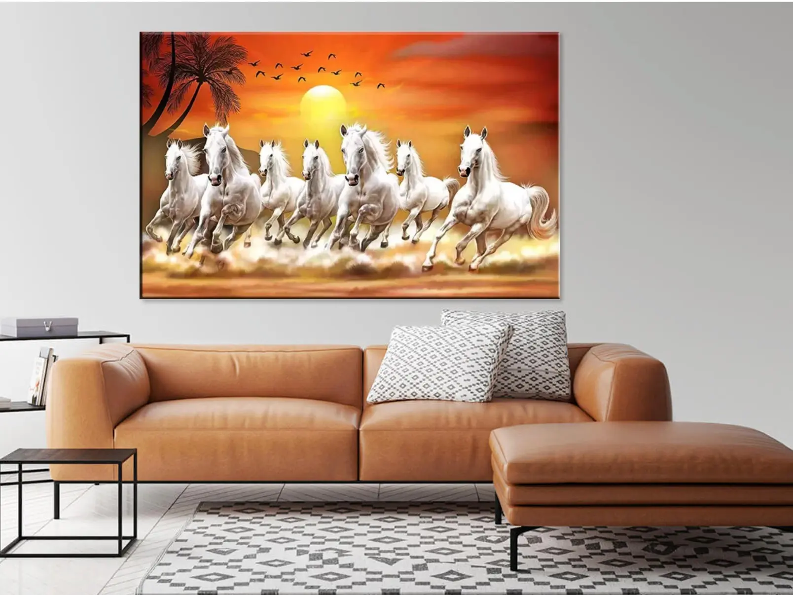 Bring home energy, success, and positivity with this stunning 7 running horses wall art, beautifully crafted on premium canvas. In Vastu, 7 horses represent growth, strength, and unstoppable progress—perfect for your home or office.