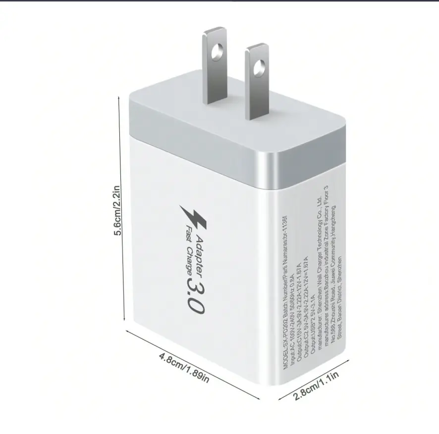 ·QC Wall Plug for quick charging.