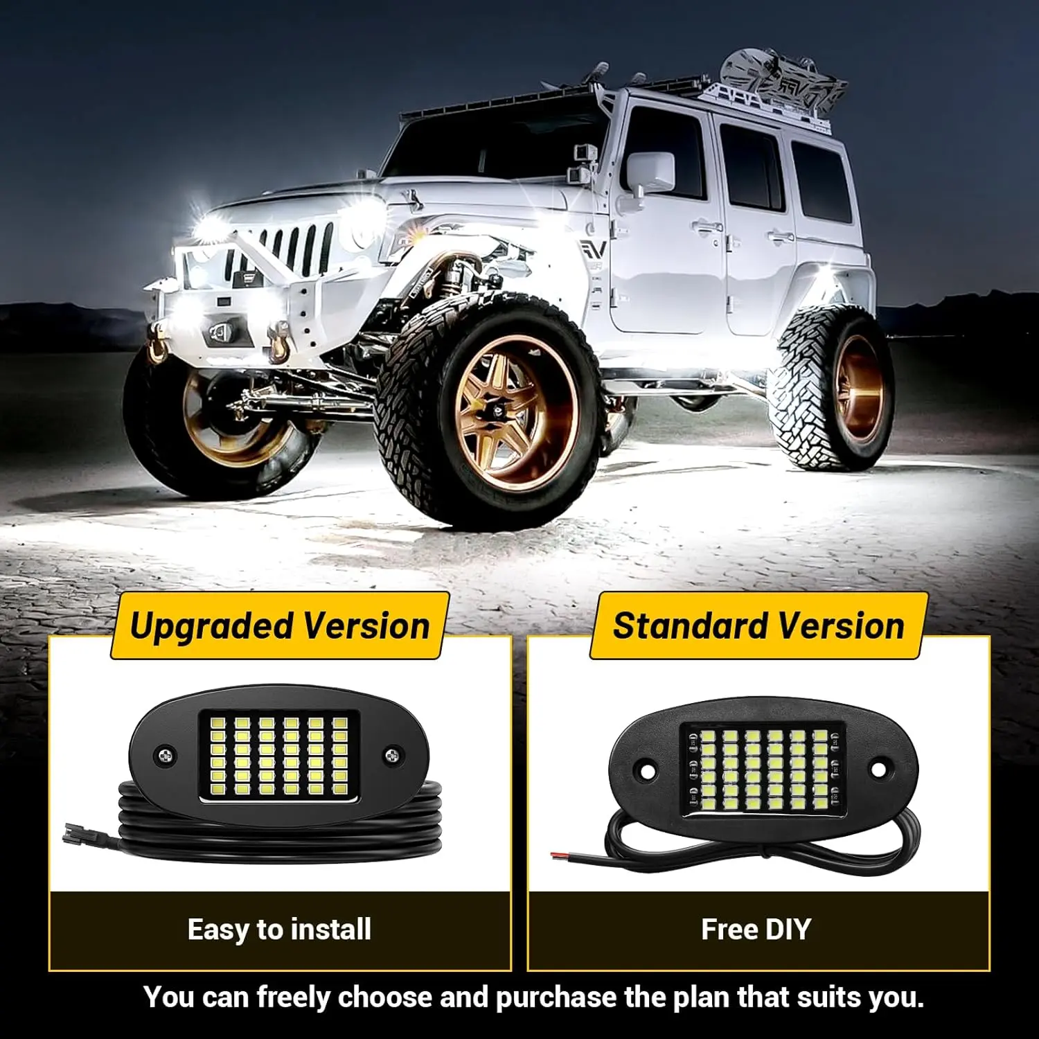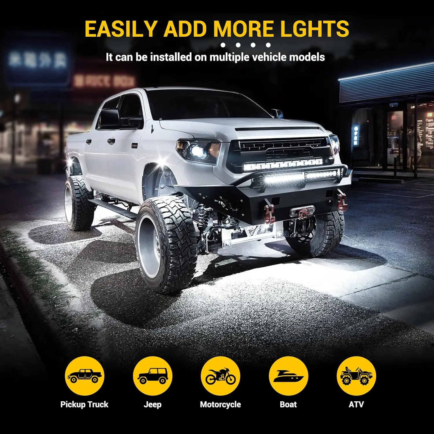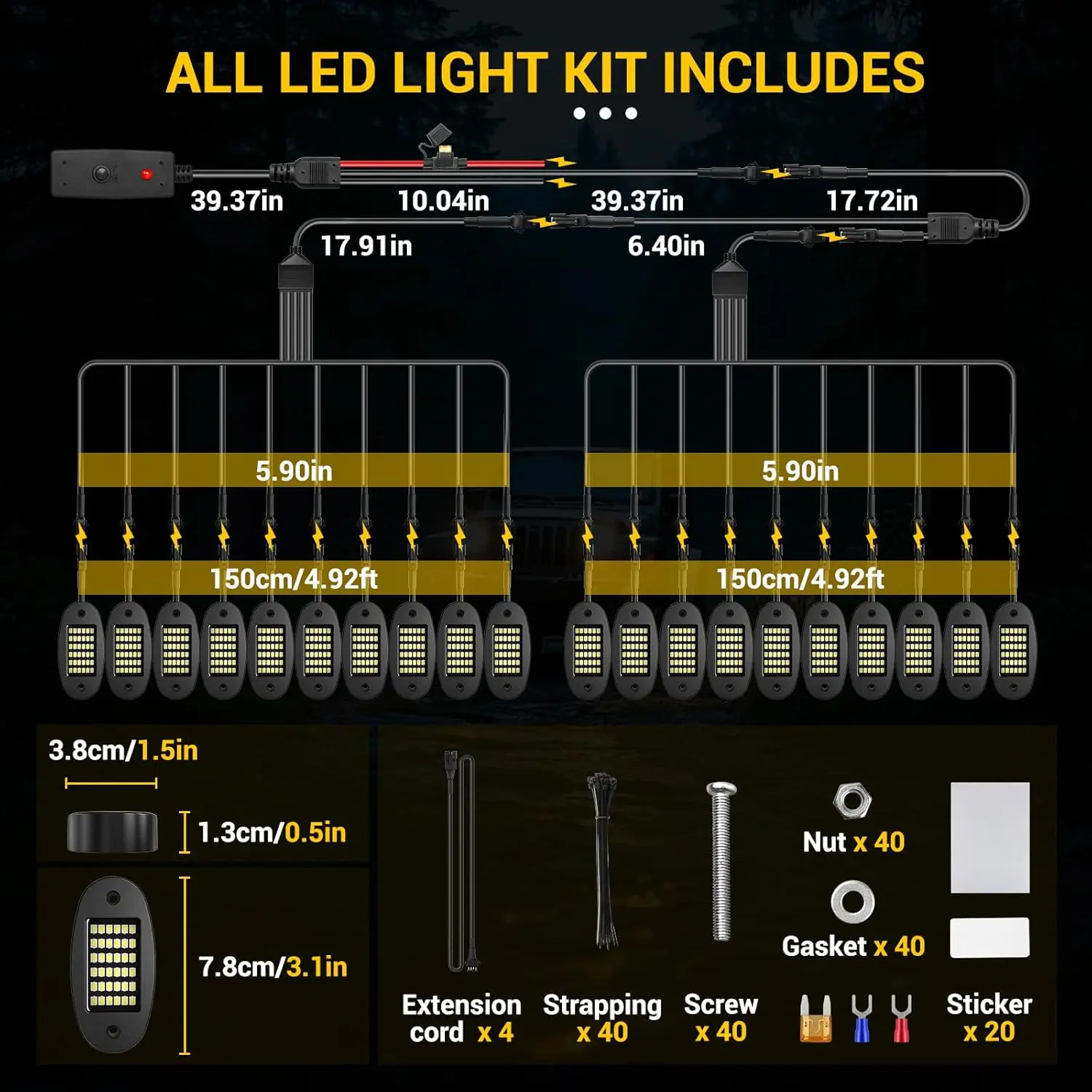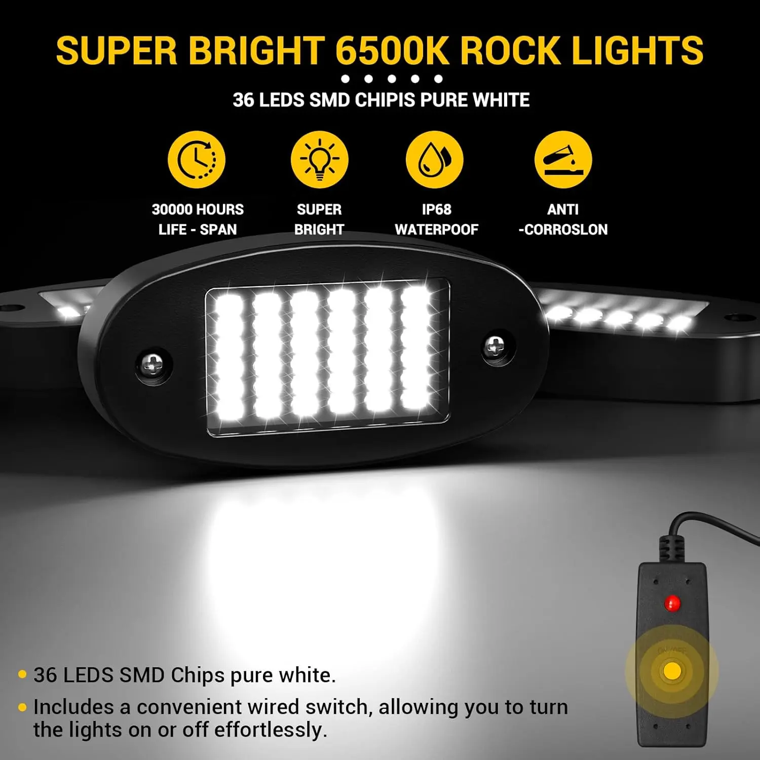 20 Pods White Rock Light Kit with Wired Switch - 6500K Pure White LED Underglow, IP68 Waterproof, Super Bright 36 LEDs for Trailer Off Road SUV UTV ATV RZR