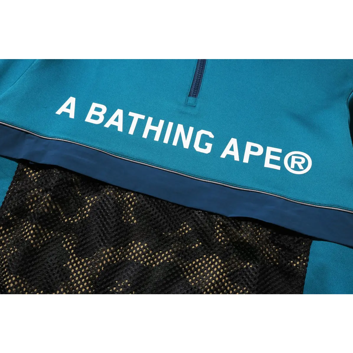 Bape 1st Camo Pocket Double Knit Half-Zip Blue Hoodie Size Medium