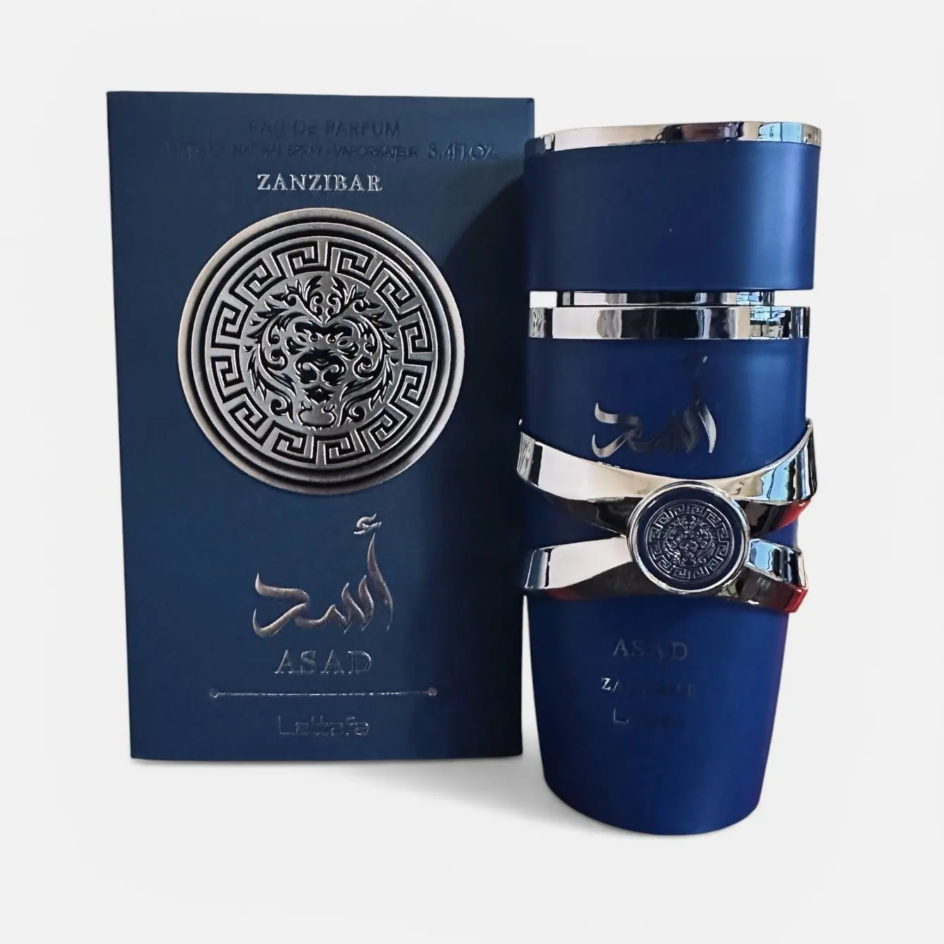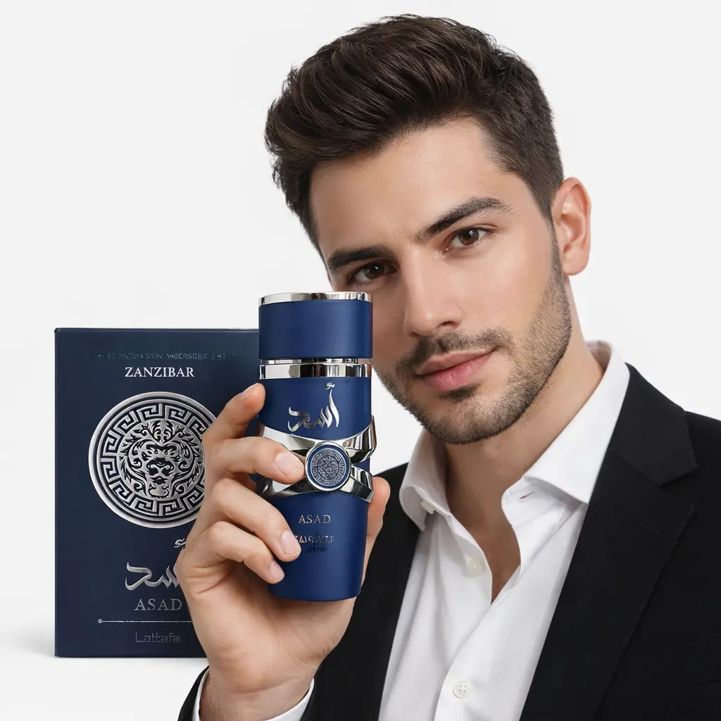 Introducing Lattafa Asad Zanzibar for Men (3.4 oz Eau de Parfum)—a refined fragrance that blends exotic freshness with modern masculine sophistication.
