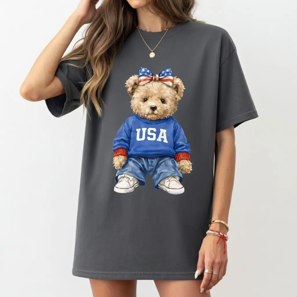 5. USA Bear T-Shirt – Trendy Mama Bear Patriotic Tee, Aesthetic American Wilderness Shirt, Retro 250th Anniversary USA 2026 Gift