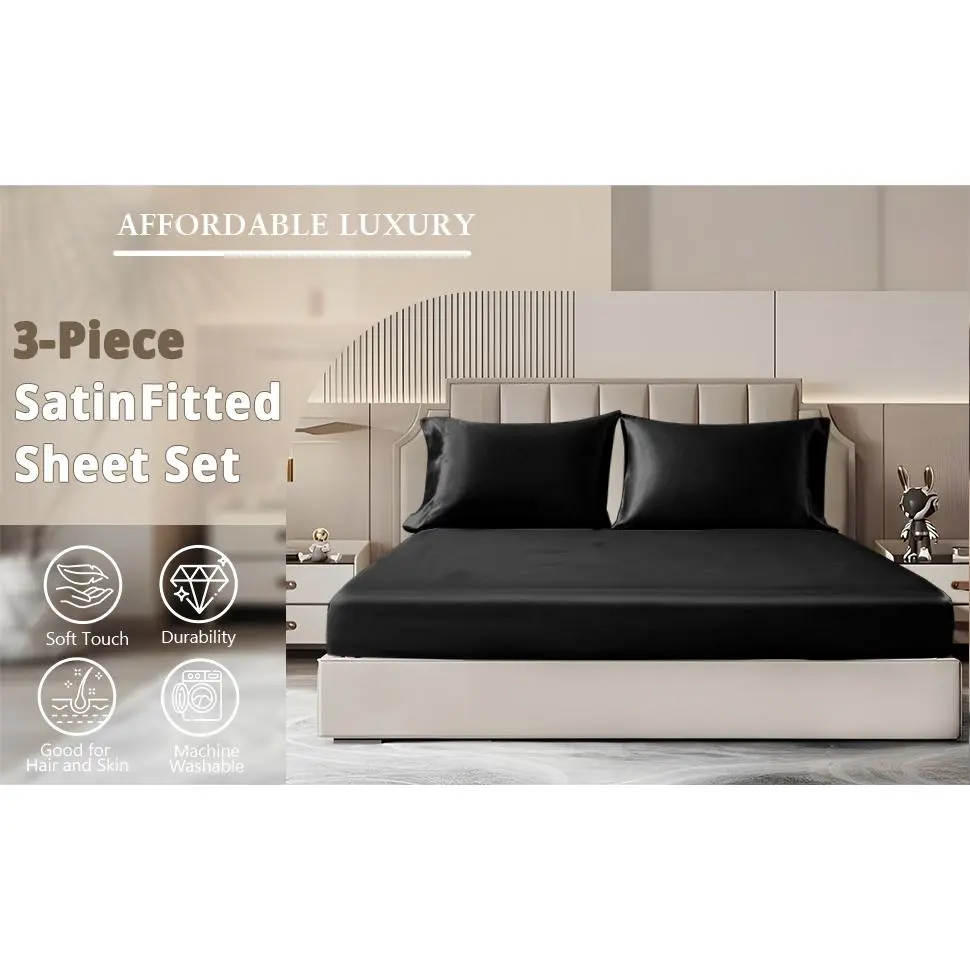 3-Piece Fitted Sheet Set - Our silky satin fitted sheet set includes 1 x fitted sheet (60"x80") and 2 x pillowcases (20"x30"), NOT includes the flat sheet. Fully elasticized fitted sheet, fits mattresses up to 14-15 inch deep pocket. Discover the extreme comfort in high-end bedding with our silky-smooth bedding.Incredible Silky Softness - A luxurious and premium quality SiinvdaBZX satin fitted sheet made from delicate satin fabric (100% Polyester).The fabric is so smooth, soft and shiny that you'll be surprise how comfortable it feels like to lie on the sheets, sleeping on it is like laying on a cloud.Wake up Refreshed - Unlike cotton, the slippery surface of the satin pillowcase reduces friction, breakage and tangles between your hair.Meantime, satin fabric is skin-friendly and can help to keep skin hydrated and dry.Make your skin looking radiant and wake up each morning feeling refreshed and full of energy.Easy to Care - Bedtime is supposed to be relaxing.Simply machine wash separately in cold water, use mild detergent.Dry on low heat.Do not bleach.Rest Assured - This bedding fitted sheet is perfect for all seasons. SiinvdaBZX soft fitted bed sheets are also an ideal match with any room design, RV, vacation house, bedroom, and for your little one's bed and playroom. If you don't love our satin fitted sheets for any reason, you can send them back with no questions asked. That is the SiinvdaBZX Promise.